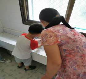 离园环节采取幼儿错峰离园,家长按时、有序排队等待。班级两位老师一前一后带领幼儿到指定接送区域,并时刻提醒幼儿保持距离。班级所有幼儿离园后,保育员对班级进行清洁消毒工作。