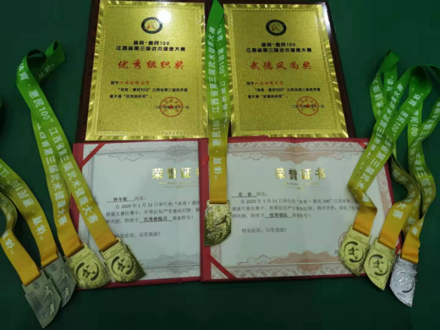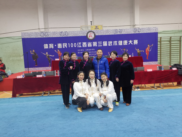 1月11日,由省体育局主办,华东交通大学、省武术运动管理中心和省武术协会承办的体育惠民100江西省第三届武术健康大赛在华东交通大学体育馆成功举行。此次大赛有来自全省各地市县25支代表队336人参赛,我校教工太极协会在钟冬根教练的带领下积极参赛。经过激烈的比拼获得4金1银2铜和团体第一名的好成绩。我校太极拳协会的积极参与和会员饱满的精神状态,获得主办方的高度赞誉,因而获得了本次大赛的优秀组织奖和武术体育道德风尚奖,钟冬根老师、常春老师分获优秀教练奖、优秀领队奖。