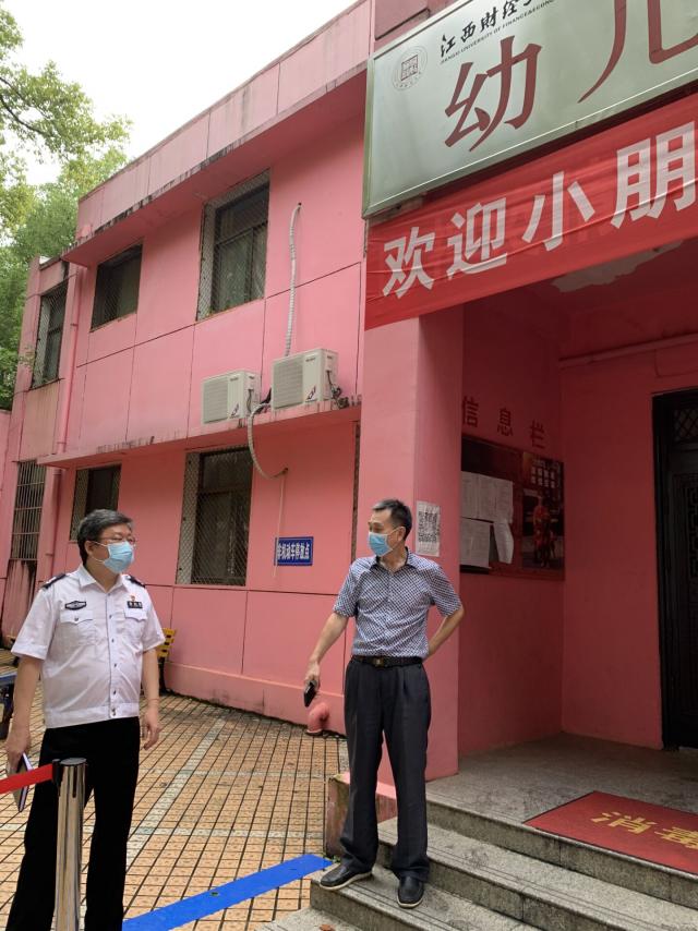 接省教育厅、省公安厅下文,要求下属单位在2020年底前实现校园安防“三个百分百”的建设要求,预防伤害学生儿童事件发生,7月6日上午,校保卫处涂向新副处长带领保卫科长张小保、罗威等一行人来幼儿园对安全工作进行检查,就文件精神对幼儿园提出了几点要求,一是严格按照教育厅和公安厅提出的规范要求,结合幼儿园自身情况,有针对性的补齐短板,切实提升幼儿园安全防护能力。二是完成实现校园“三个百分白”的工作目标:中小学(幼儿园)封闭化管理达到100%,一键式紧急报警、视频监控系统与属地公安机关联网率达到100%,中小学(幼儿园)专职安保人员配备率达到100%。三是消防器材和消防自动报警系统进行配备安装。一定要把安全红线意识树牢,把幼儿园大门守严。