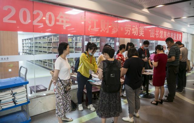 7月10日下午,由校工会主办,图书馆承办的“江财梦·劳动美”图书馆岗位技能竞赛之排架搜书比赛在蛟桥园图书馆内如期举行,正式拉开了2020年“江财梦·劳动美”图书馆岗位技能竞赛系列活动的帷幕。开赛仪式上,校工会副主席吴太福、图书馆馆长贺三宝、书记罗明芳、副馆长郑淑娟、副馆长陈伟峰、副馆长王醒喆出席了仪式。