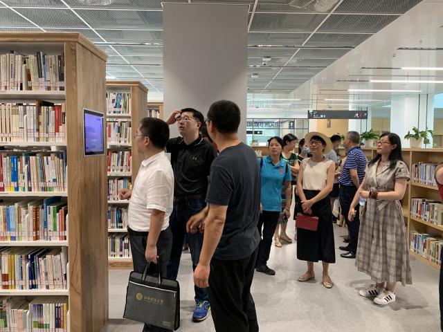 随后,在江西省图书馆副馆长黄俊及办公室相关人员陪同下,一行人实地察看了借阅大厅、少儿部、馆藏书库、文化展厅等区域,实地了解江西省图书馆免费开放状况和各项创新服务,大家都惊叹于它的文化地标建筑、智慧化设施、人性化服务。