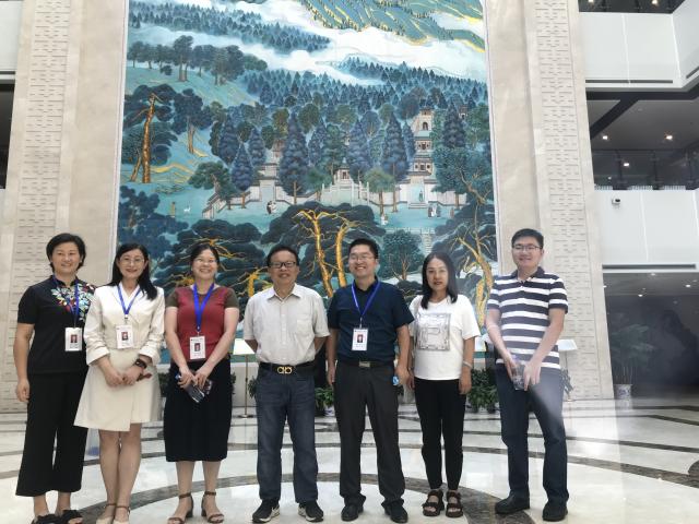 党馆长一行人参观了图书馆的《孔子施教图》、壁画《源远流长》、大数据显示屏、江财文库和经管类样本书库等,了解到江财的不断创新发展和绵延不断的文化传承,并询问了关于学术墙上的一些国内外学者的情况,我校图书馆馆长贺三宝给予了详细的讲解。在陪同过程中贺馆长还将我校图书馆的战略规划、馆内功能布局和人员配置、阅读推广活动项目以及图书馆建设理念等向嘉宾做了详细的介绍。最后,大家一起在一楼中庭合影留念。
