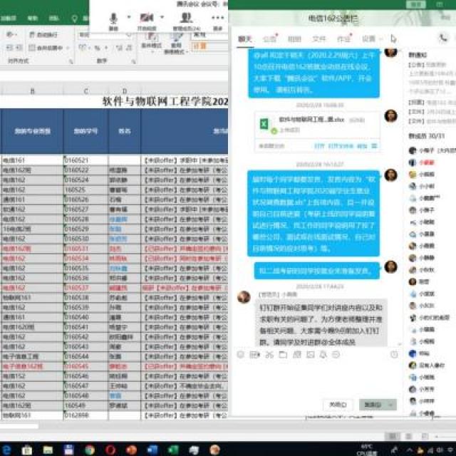 软件163班班主任廖波和物联网161班班主任党建武与班上的每位同学都进行了电话沟通,充分做好线上动员工作。其他毕业班师生也在线上动员会上就就业具体情况进行了交流与讨论,对班上每个同学的情况,班主任们都进行了细致且耐心的分析、引导。