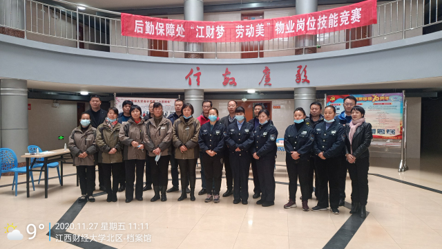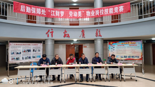 岗位展才华,服务攀高峰。为进一步提高员工的整体素养和业务技能,不断提升物业服务品质,为全校师生提供更优质的服务,11月27日上午,监管中心举办以“江财梦劳动美”物业岗位技能竟赛在蛟桥园北区9栋宿舍大厅举行,后勤保障处副处长左维民、姜瑜与中心领导黄和贵、卢峻、张祖老、张毛毛等观摩了本次大赛并担任评委。