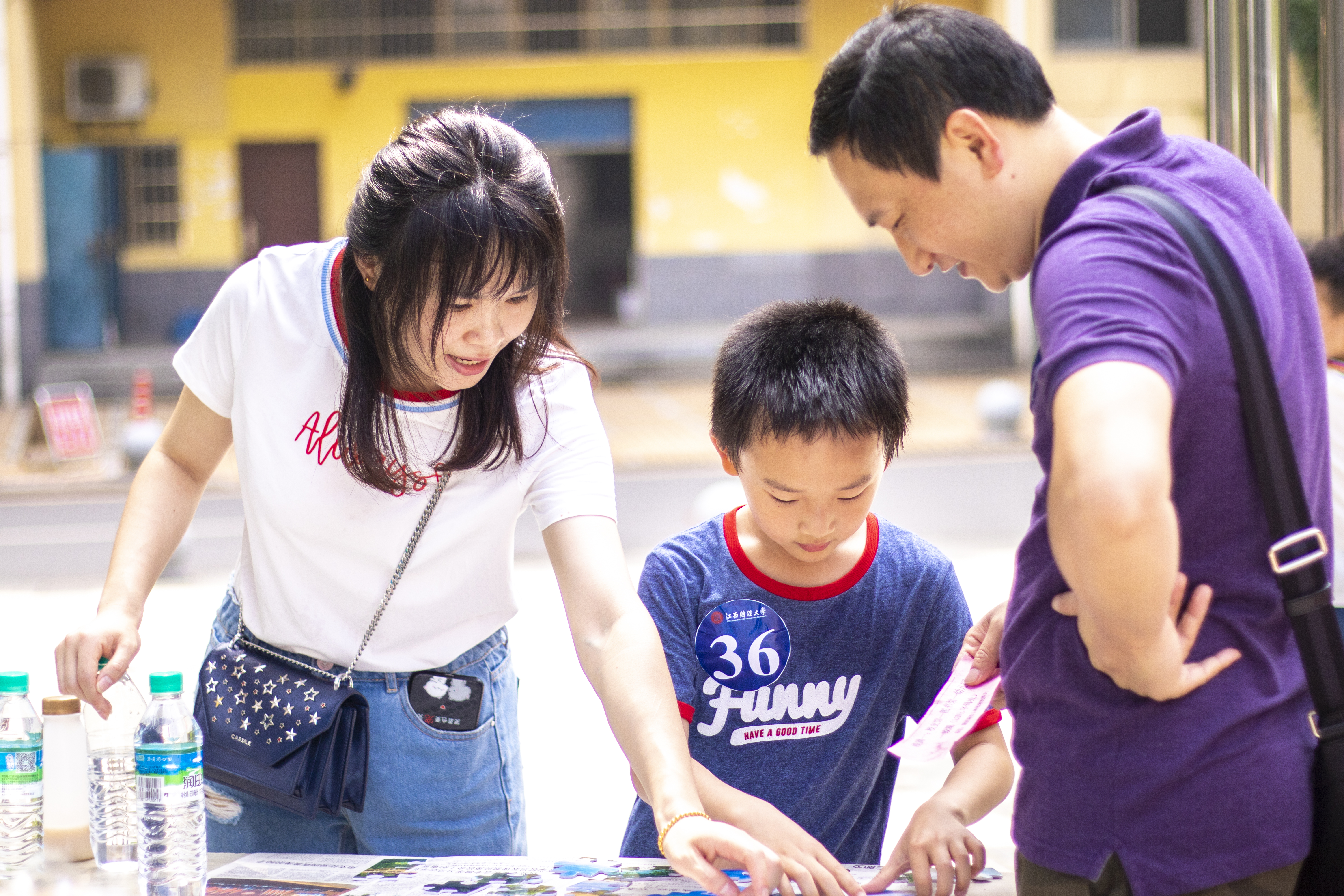5月18日上午,“江心连心,财有你来”——2019年度江西财经大学教职工亲子定向越野活动,在蛟桥园北区崛起广场拉开序幕。该活动由江西财经大学工会主办,江西财经大学青年教职工工作委员会承办,由人文学院协办。本次活动旨在传承江财文化,促进教职工亲子互动,提升教职工的职业获得感和家庭幸福感。在阵阵轻松的音乐中,孩子们三五成群嬉戏追跑,笑声、闹声不绝于耳;不远处,参加活动的教职工们或与自己的孩子一同玩耍,或与他人轻松地交谈。来自人文学院社会工作专业的学生志愿者们正在为参加活动的家庭进行抽签、登记等准备工作。