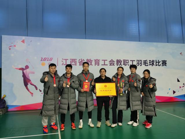为丰富和活跃省教育工会各直属基层工会教职工文化生活, 提高教职工健康素质,促进教职工之间交流,11月7日至9日在南昌航空大学举办 2020 年江西省教育工会直属基层工会教职工羽毛球比赛,我校羽毛球队队员顽强拼搏,荣获团体第六名的好成绩。
