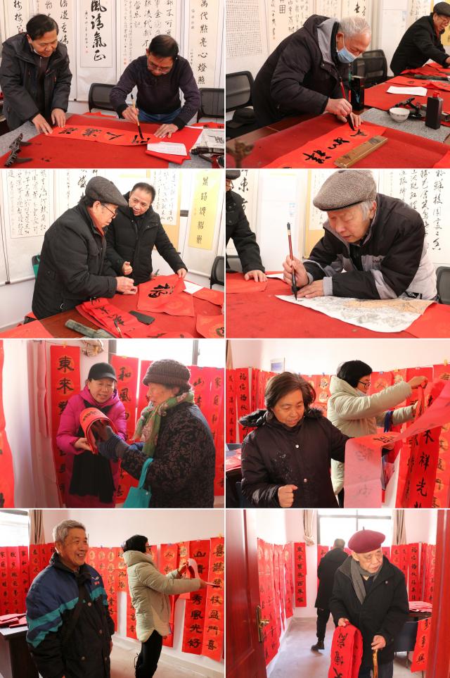 活动期间,会员泼墨若云烟、挥毫辗转连,楹联腾紫气、送福贺新年。教工们先后来到活动现场、欢声笑语,喜领新年对联。本次活动共写送春联100多副,受到大家好评。(文/胡晓毛 图/刘建芳)