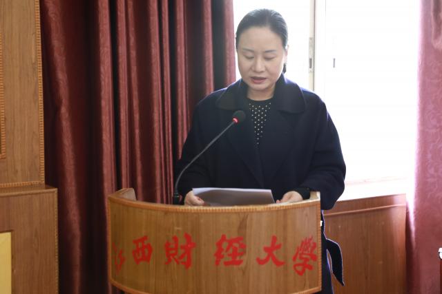 会议伊始,校党委常委、副校长刘小丽作重要讲话,她肯定了会计学院在2020年取得的可喜成绩,对学院未来工作的目标和改进措施提出更高要求,号召全院教职工继续齐心协力,以学院的事业为已任,求真务实,发奋图强,开拓创新,扎实工作,并祝愿学院在新的一年取得更多丰硕成果,为建设一流会院、助力实现“百年名校江财梦”贡献更大力量。