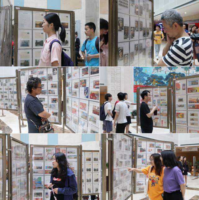 开幕式后,师生共同参观本次邮展的精美党史邮票。王洪新向师生们娓娓道来一张张邮票里藏着的激动人心的宏伟历史。