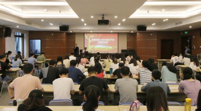 随后,王洪新为在场师生带来题为“我国邮票上的中国共产党党徽和党旗”的讲座。讲座围绕以党徽为主图的邮票、以党旗为主图的邮票、以党徽和党旗为附图的邮票以及以镰刀、锤头为主图的纪念邮票展开,介绍了其巧妙的设计、背后的历史故事及象征意义。