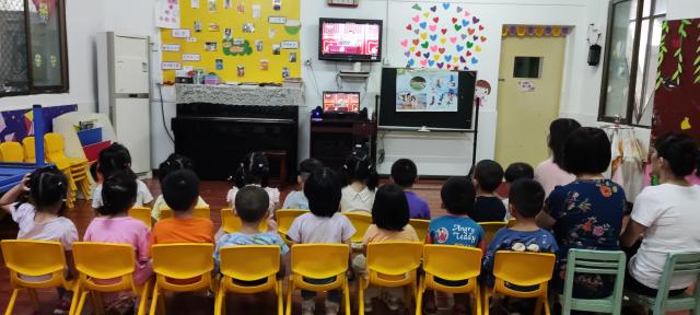 7月1日上午,中国共产党成立一百周年庆祝大会在北京天安门广场隆重举行,财大幼儿园第一时间组织全园师幼收看大会现场直播。