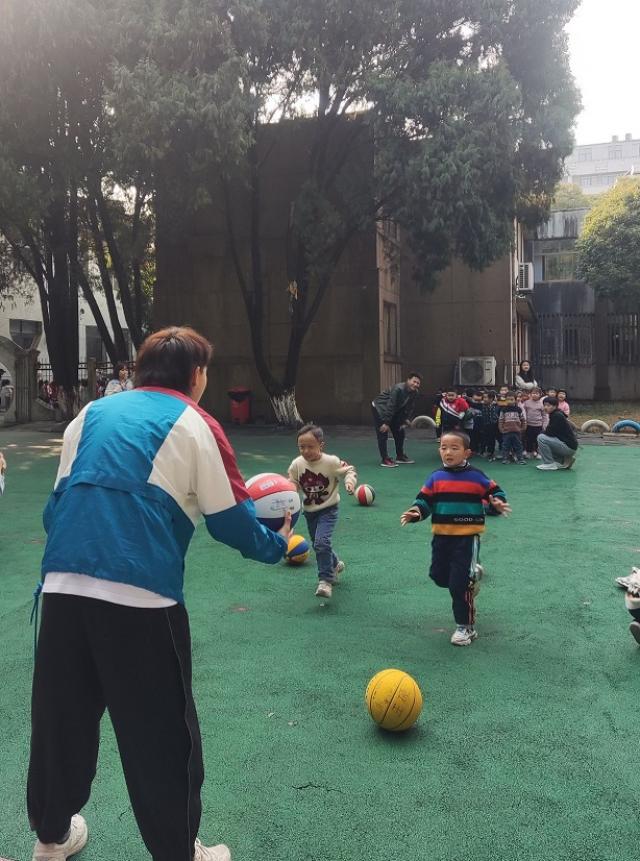 看到阳光自信、活泼可爱的志愿者们,孩子们都欢呼雀跃、手舞足蹈地向他们打招呼。在志愿者的带领下,孩子们都学的极其专注,篮球班的小朋友们,和篮球一起运动一起游戏,脸上都洋溢着开心、幸福的笑容。“一、二、一”整齐有力的口令声,健美操班的孩子们跟着志愿者已经做起了热身运动,操场上到处都是孩子们运动的身影,满是自信和欢快。