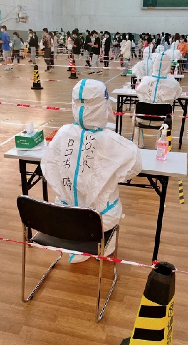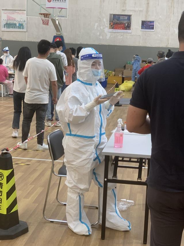 都说“没有从天而降的英雄,只有挺身而出的平凡人”,吕书晴老师接到任务后,按照指定时间到达检测点,穿上密不透风的防疫服和做好一系列防护工作后,开始了一个上午的核酸信息录入员的工作,面罩和口罩下压抑的呼吸,防疫服和阳光下的汗水,让她真切体会到,为了抗疫奋战在一线的医护人员和社区工作者的艰辛。