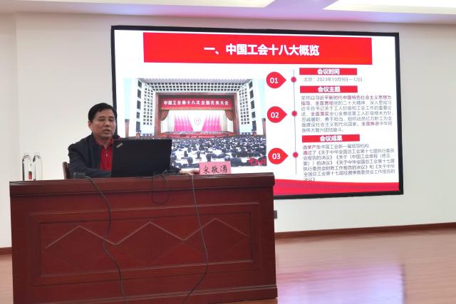 在接下来的专题培训中,来自中共江西省委党校南昌大道校区管理办主任助理,江西省总工会干部学校校长助理宋敬湧教授,以“学习宣传贯彻习近平总书记重要讲话精神,落实中国工会十八大要求,全力开创新时代工会工作新局面”为题进行专题讲座。宋敬湧教授以独到的视角、新颖的观点、精简易懂的方式为成员讲解工会十八大内容、习近平总书记重要讲话、王东明工会工作报告及重新修订的《中国工会章程》等学习内容,为后续实践教学奠定了坚实的理论基础,为广大工会干部在新时代新形势下如何高质量开展工会工作提供良好的指导。