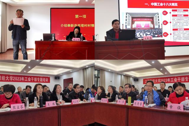 为深入学习贯彻习近平总书记讲话精神和中国工会十八大精神,落实习近平总书记关于工人阶级和工会工作的重要论述,持续加强基层工会队伍建设,提高工会干部政治能力、专业能力和群众工作能力,2023年11月24日下午工会在奉新县西塔村组织举办了“凝心铸魂学思想 笃行实干建新功”2023年工会干部培训班,学校党委常委、副校长刘小丽,校工会委员,各分工会主席,教工文体协会负责人40余人参加了本次培训。