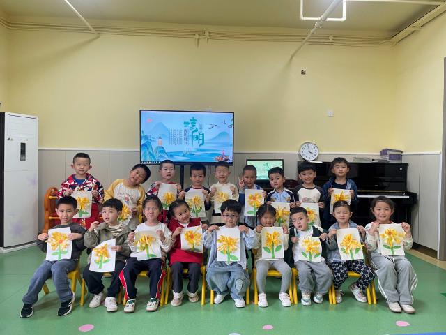 最深的缅怀是弘扬,最好的纪念是传承。小朋友们通过故事讲解、图片展示、视频播放等多种方式,与老师一同了解了清明节的由来和传统习俗,追念先辈感恩当下。在老师们的带领下,小朋友们在看一看、听一听、画一画、动一动中感受了清明节的传统及意义。“碧玉妆成一树高,万条垂下绿丝绦。”柳树生命力旺盛,在春天往往最先吐出新芽,小班小朋友们跟着老师捏起了手工黏土作品——柳条,一起感受春的气息,拥抱春天的美好。小小菊花寄相思!中班小朋友们一起制作了菊花,通过剪、贴等创作制作出了一朵朵美丽的菊花,祭奠祖先,缅怀先烈。“春风自下而上,纸鸢因之而起”,放风筝既是清明节的一种游艺活动,也是清明传统习俗之一。大班小朋友们自己动手绘画制作的风筝也显得格外有意义。