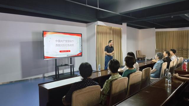 活动开始,首先随着讲解员声情并茂的生动介绍,大家驻足江西省妇女运动百年展板前,观赏栩栩如生的历代英豪,重温江西妇女在党领导下艰苦卓绝而又光辉灿烂的历史。该展览以时间为轴,生动再现了江西省百年妇女运动的历史画卷。然后江西省妇女儿童活动中心副主任凌云又给大家做了《中国共产党领导下苏区妇女红色动员》专题讲座。最后,江西省女科协常务副会长江财分会负责人刘金凤教授介绍组织此次活动的意义,部分代表交流了个人体会,江财分会副会长杨慧教授在1995年世界妇女大会江西代表合影照片前久驻,并回忆了当年参加会议的场景,弹指一挥近三十年,她已从一个年轻女教师成为一名成果颇丰,桃李满天下的女学者。女科协江西农大分会也派了代表参加此次活动,会长辜菁菁教授还分享了个人感悟。