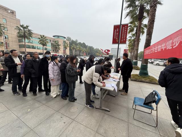 为庆祝新年的到来,丰富和活跃广大教职工的的文化生活,12月27日上午,校工会分别在蛟桥园校区和麦庐园校区设点举办了健步走活动。