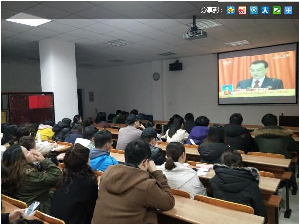 3月5日上午9时,艺术学院组织师生党员在学院315观看了十三届全国人大二次会议开幕会直播。院党委书记刘灵、副书记陶志超、党支部书记王慧芳及学生党员近一百人进行了集中观看,活动由刘灵主持。