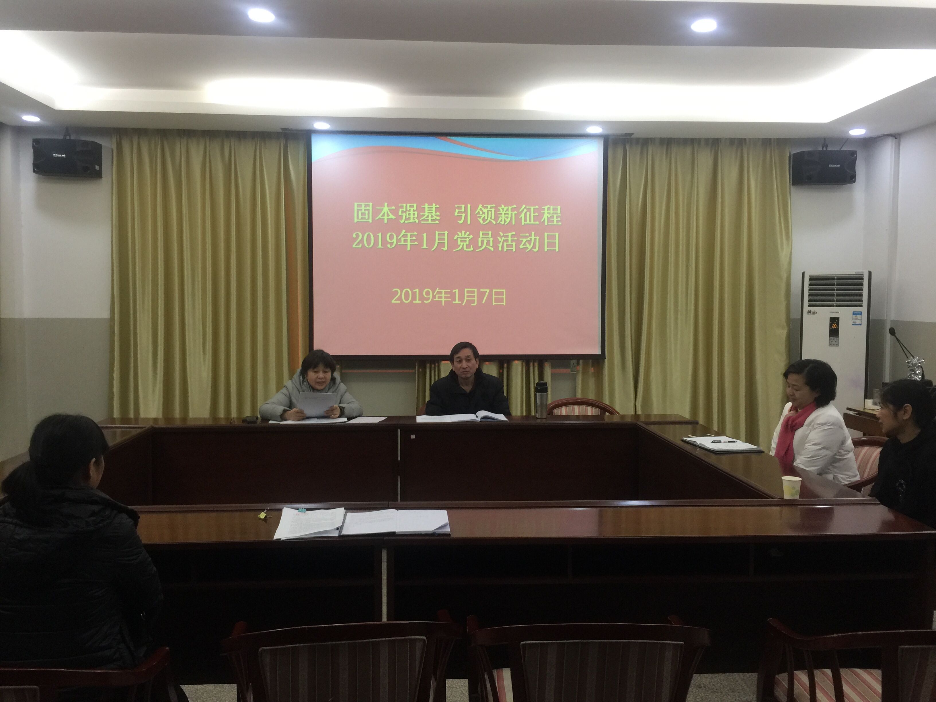 为持续深入学习贯彻习近平新时代中国特色社会主义思想和党的十九大精神,工会党支部1月7日上午,举行了以“ 固本强基,引领新征程”为主题的党员活动日活动。会议由党支部书记刘金凤主持,全体党员参加。