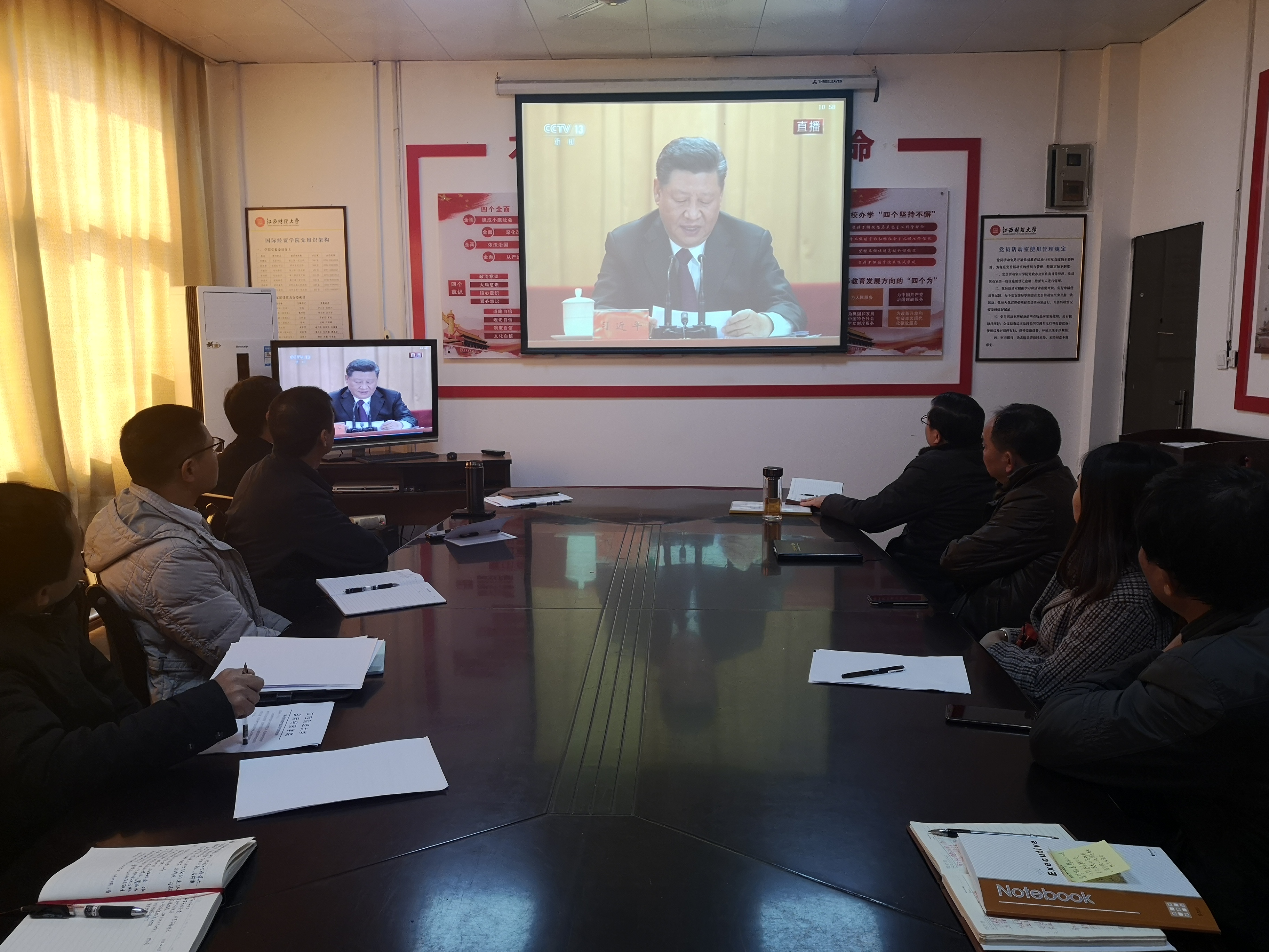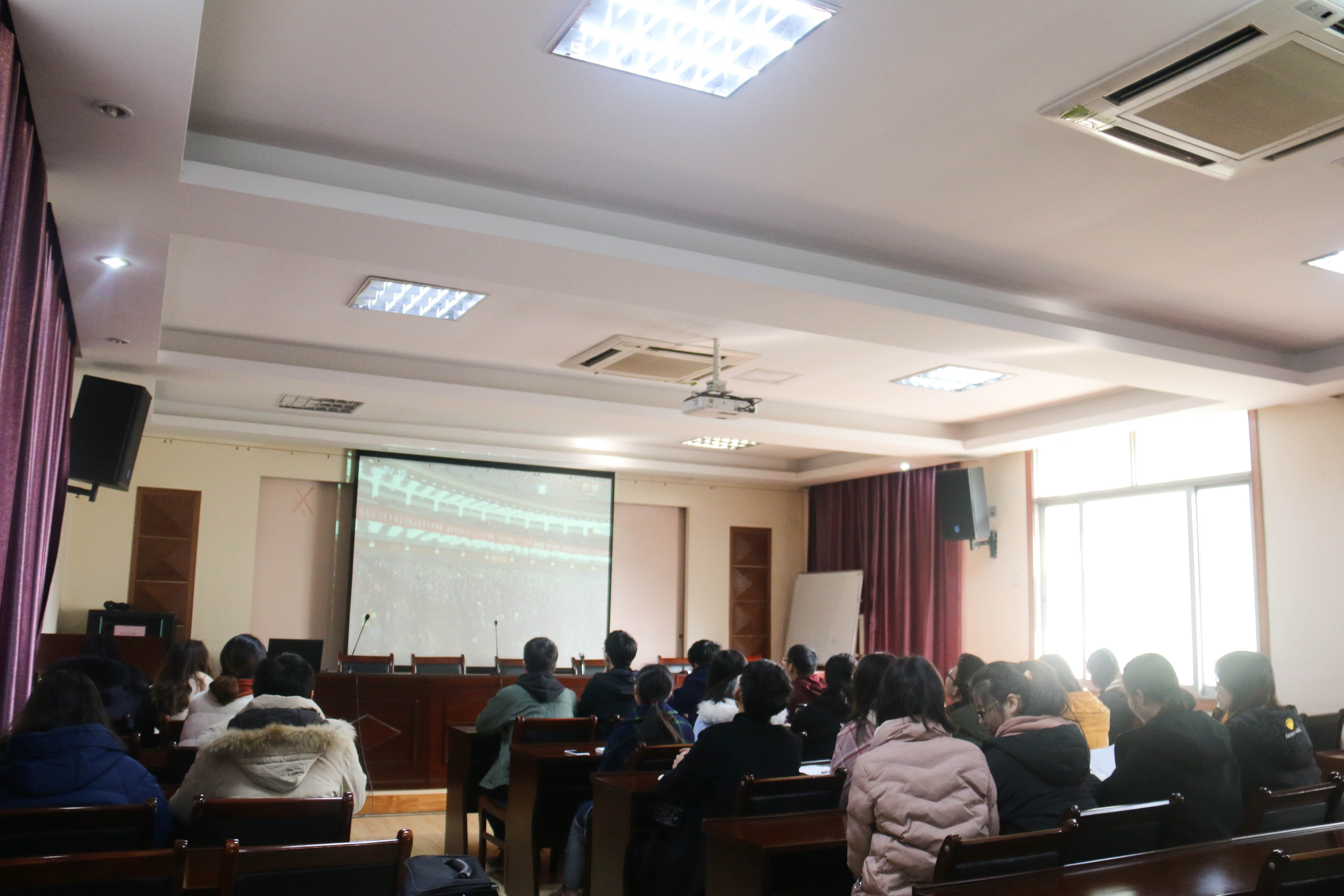 除了要求不在校的师生自行利用电子设备观看外,学院分工会开设了两个集中观看会场,一个是在学院大会议室,集中了学院学生干部、学生党员和入党积极分子;一个是在学院新近装修好的党员活动室,集中了学院班子成员、在学院的教师及行政人员。