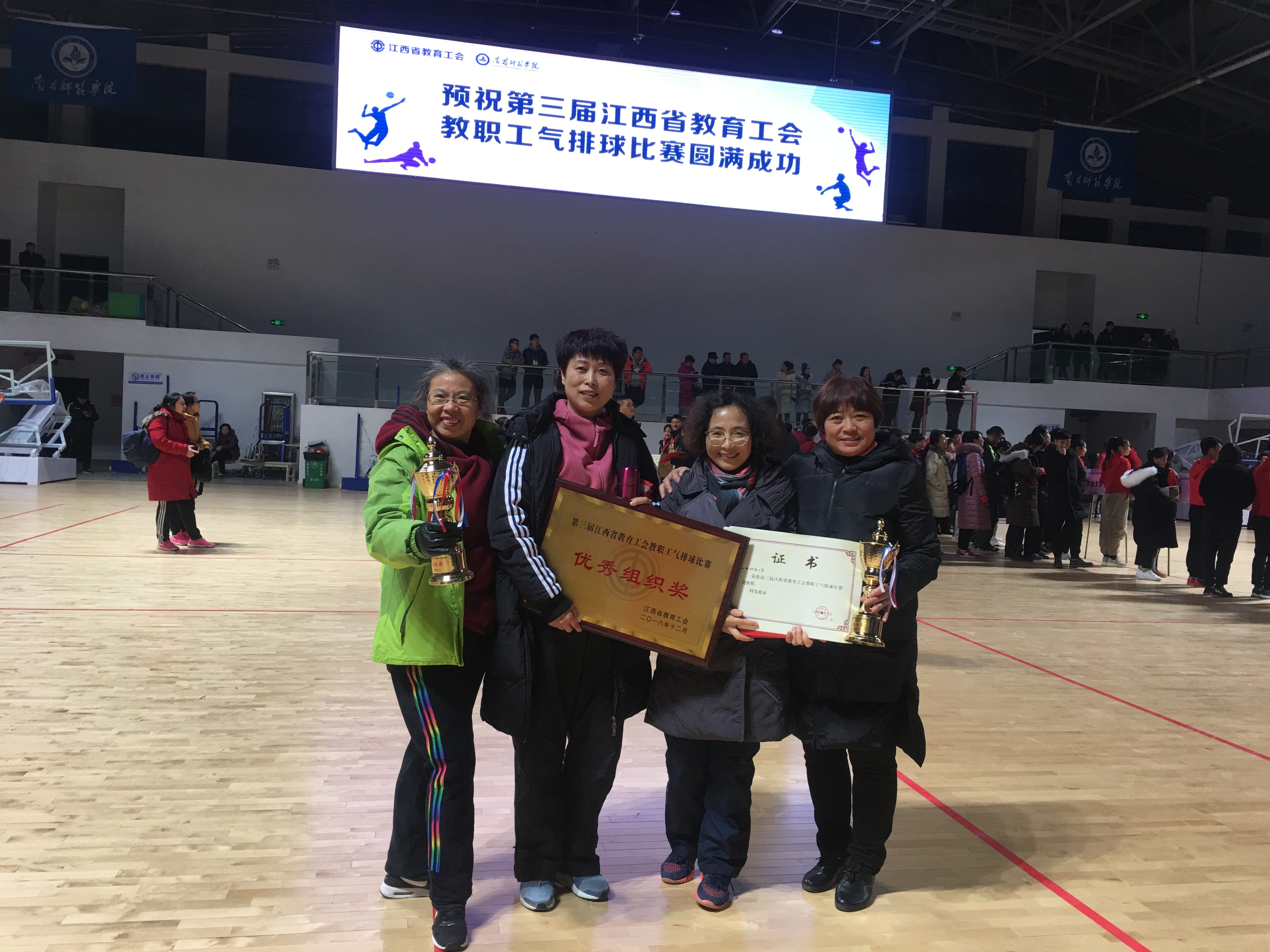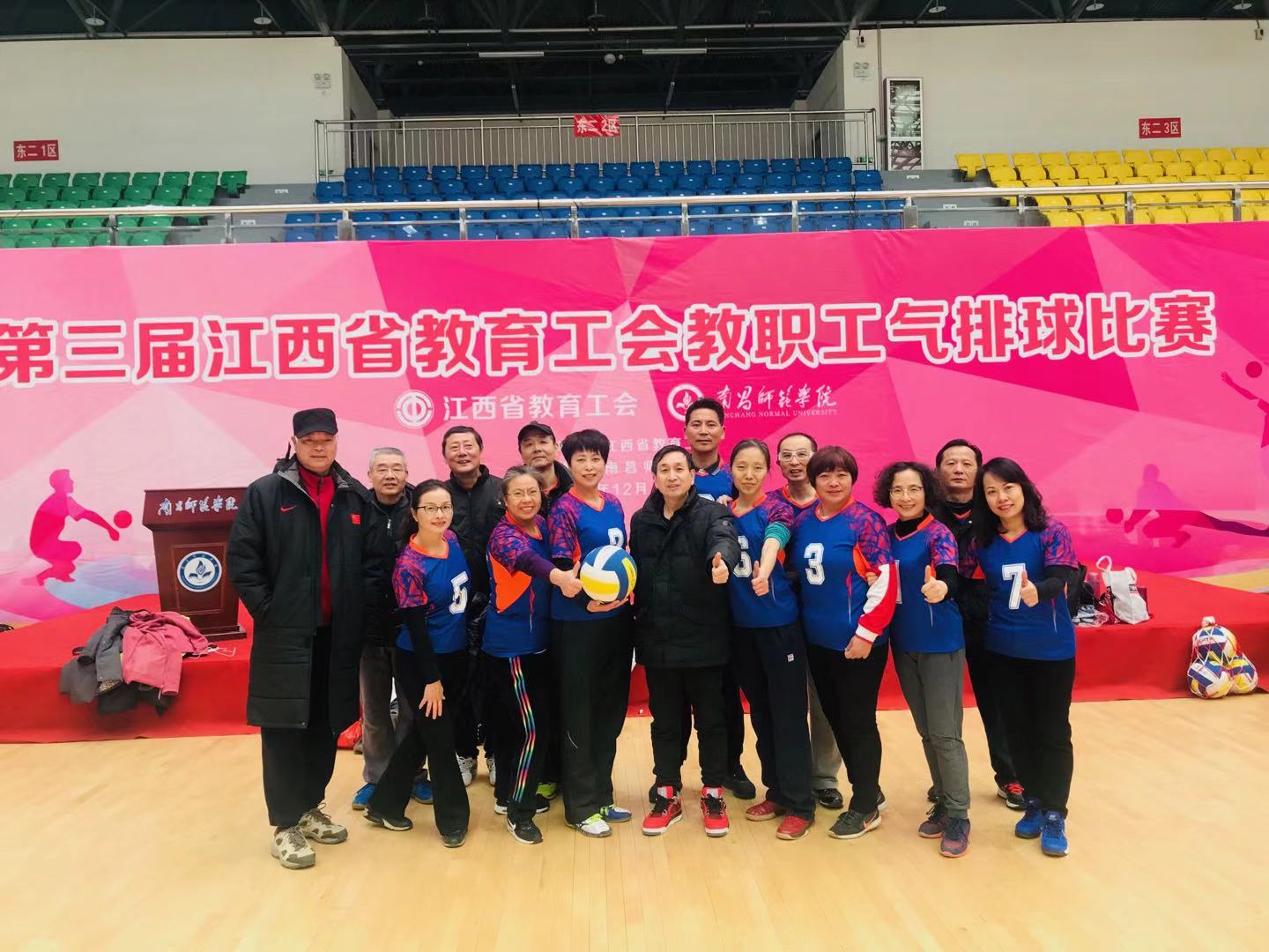 2018年12月10日—12月12日我校教工男、女气排球队在校工会的组织和支持下,参加了江西省教育工会在南昌师范学院举办的第三届江西省教育工会教职工气排球比赛。比赛分为本科院校组、非本科院校组,我校教工男、女气排球队参加的是本科院校组比赛。本次气排球比赛本着友谊第一,比赛第二的理念,分为两个阶段:第一阶段单循环赛,第二阶段进行同名次赛或交叉淘汰赛。