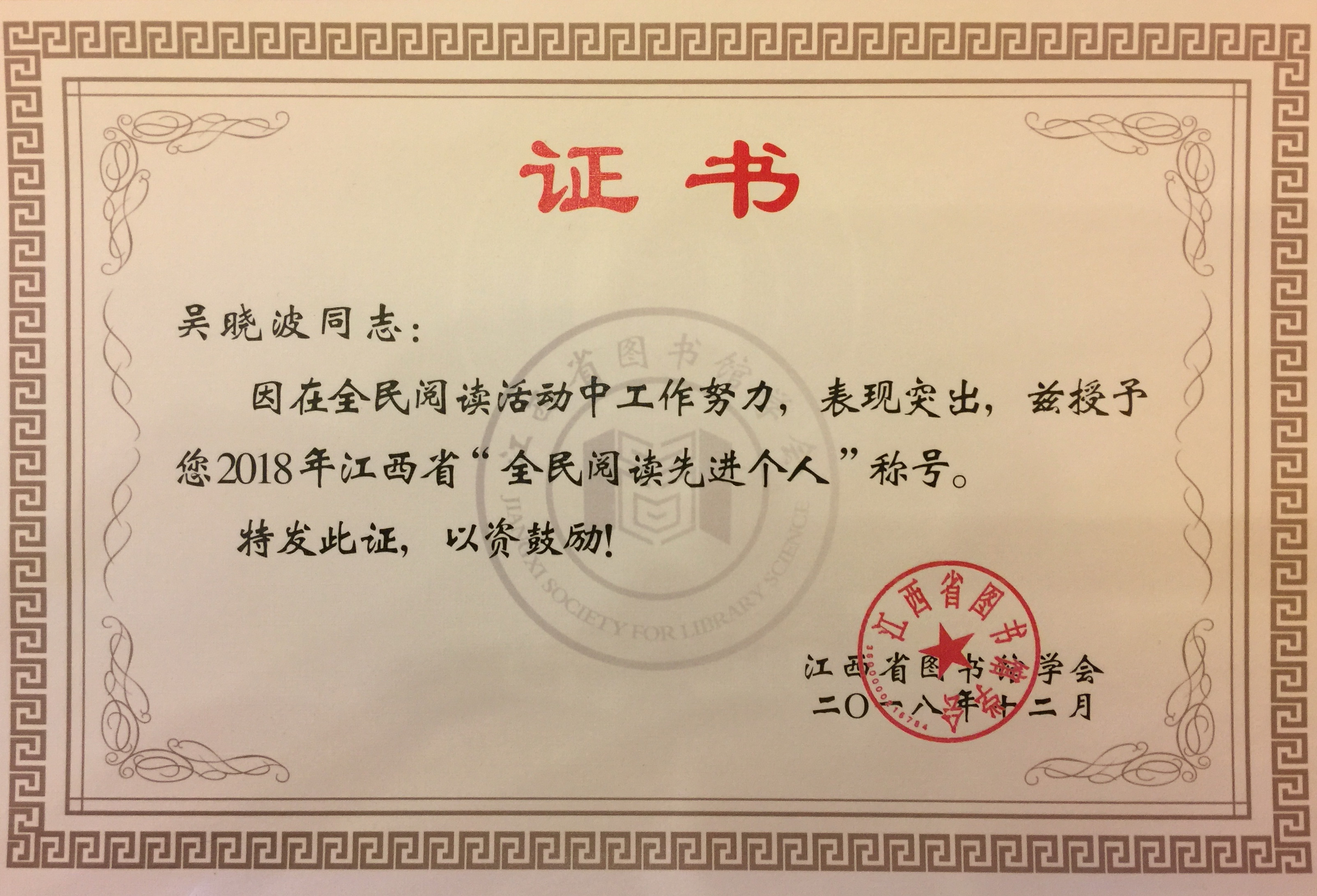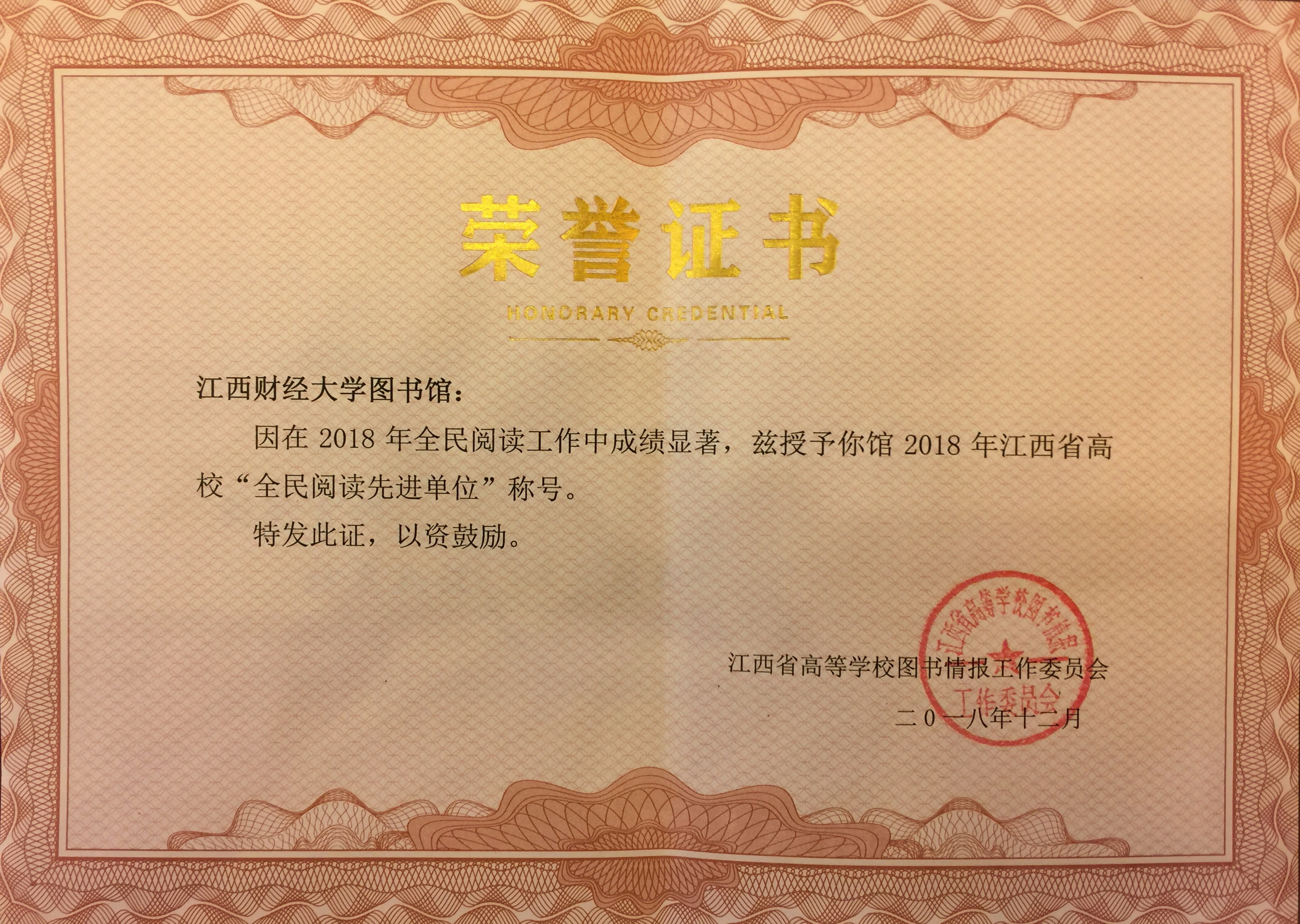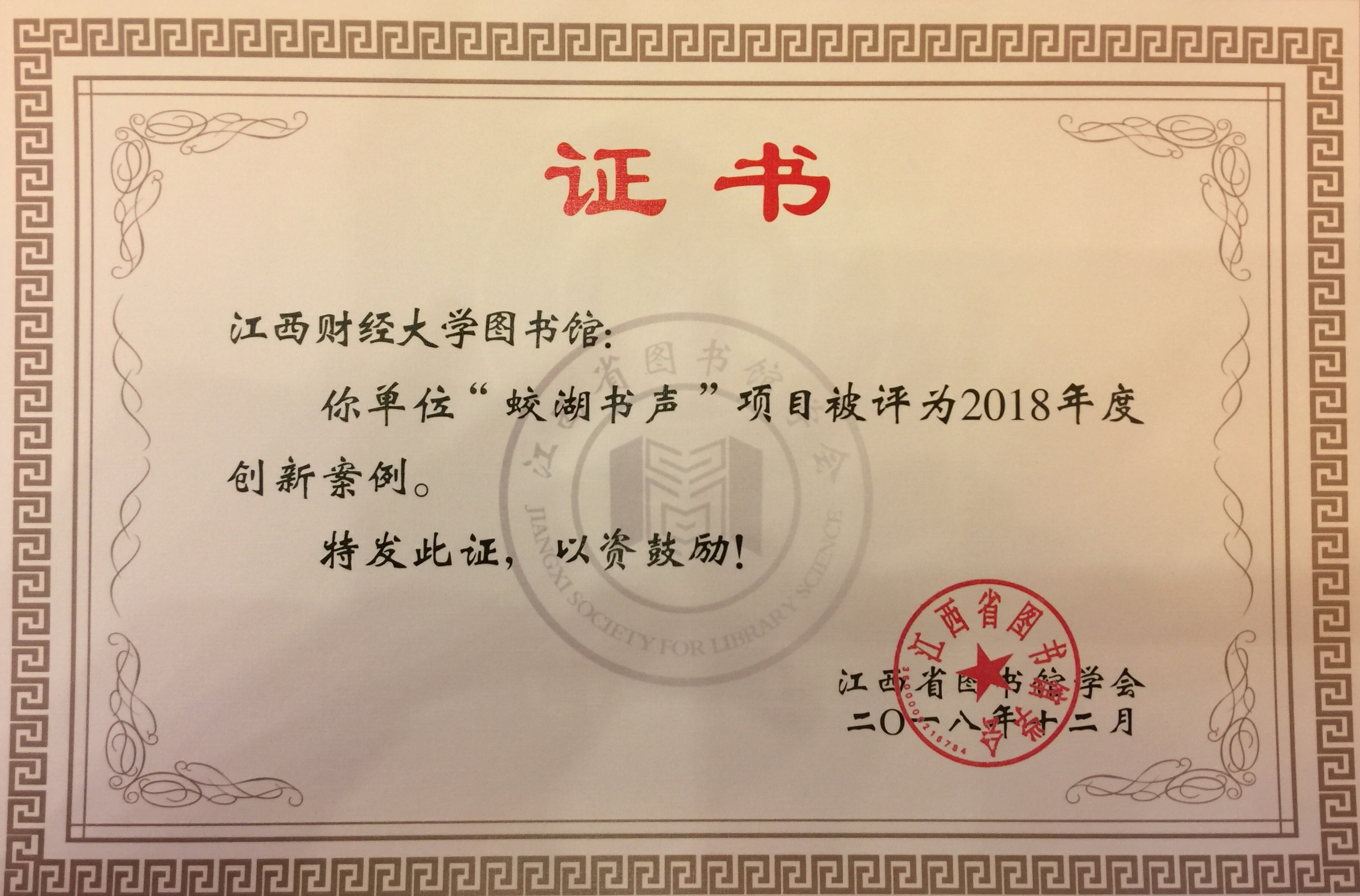 12月20日至21日,2018年江西图书馆年会暨图书馆阅读推广培训会在南昌召开。省文化和旅游厅、教育厅、社联、科协相关领导出席会议,全省各级公共图书馆馆长,高校系统图书馆馆长及有关专家学者等300余人参加会议。会议由省图书馆学会理事长陶涛主持。我校图书馆馆长邹传教参会,会议授予了我校图书馆2018年“全省首届图书馆创新案例单位”、“全民阅读先进单位”荣誉称号,吴晓波老师被授予“全民阅读先进个人”荣誉称号。