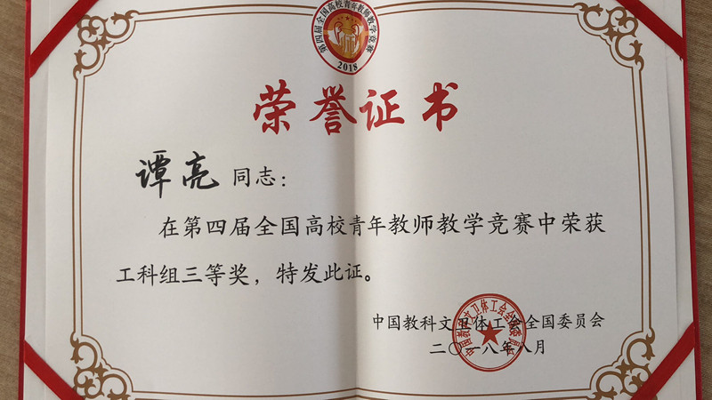 2018年8月27日至31日,第四届全国高校青年教师教学竞赛在浙江师范大学成功举行,我校青年教师谭亮代表江西省高校参加了工科组的竞赛角逐,经过激烈的教学比拼,荣获大赛三等奖。