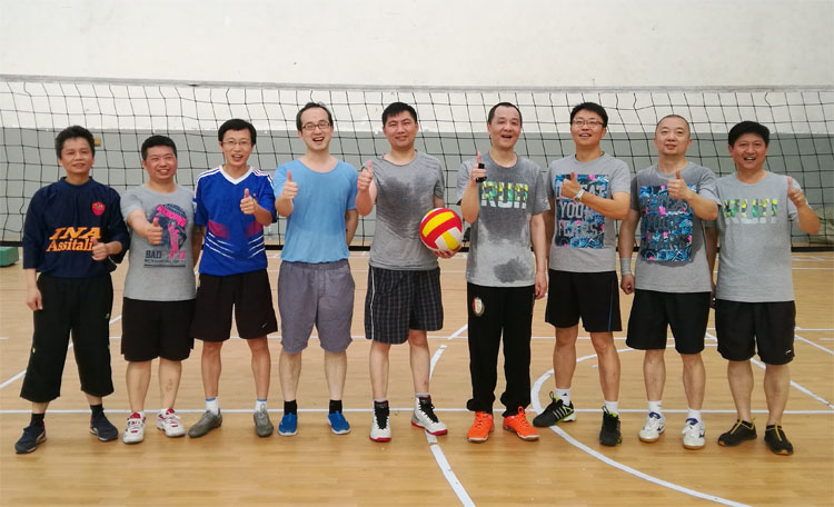 网络信息管理中心分工会为促进中心职工的身体健康,深入开展全民健身活动,迅速组织了一支男子气排球队,并在比赛前进行了多次的训练。