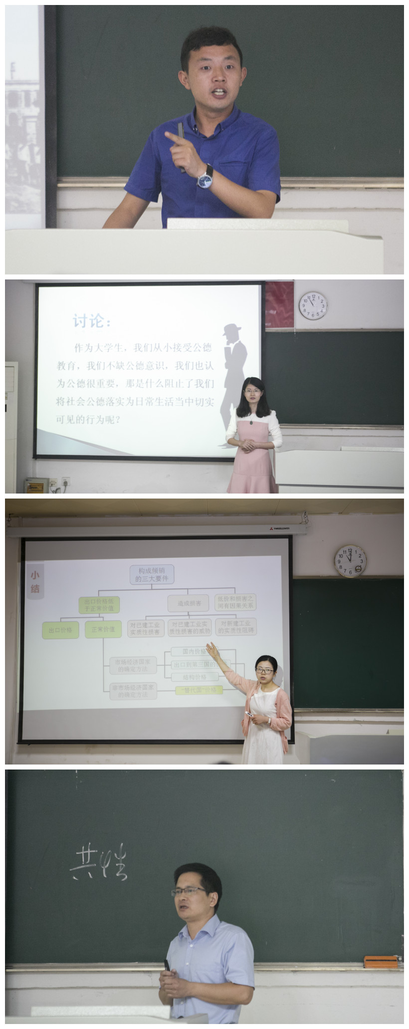 上午八点半,比赛正式拉开帷幕。参赛教师们个个精神饱满、斗志昂扬,候场区里选手们相互鼓励、互相探讨,赛场上从容不迫、尽情发挥。配合着PPT的演示、教师们生动的语言和严谨的态度,教科书上静态的知识以更易接受的方式展现出来,吸引着在场评委们的眼球。教学比赛结束后,专家评委对比赛进行了点评。第一组的组长许统生教授还对每一位选手进行了详细的点评。尤其是指出选手教学中的不足,便于提高今后的教学水平。为了提高教师们的教学水平,一些建议细化到讲课时的身姿形态与PPT播放配合、课件的色彩、文字的大小等方面,力求让选手以后到江西省决赛时做到尽善尽美。