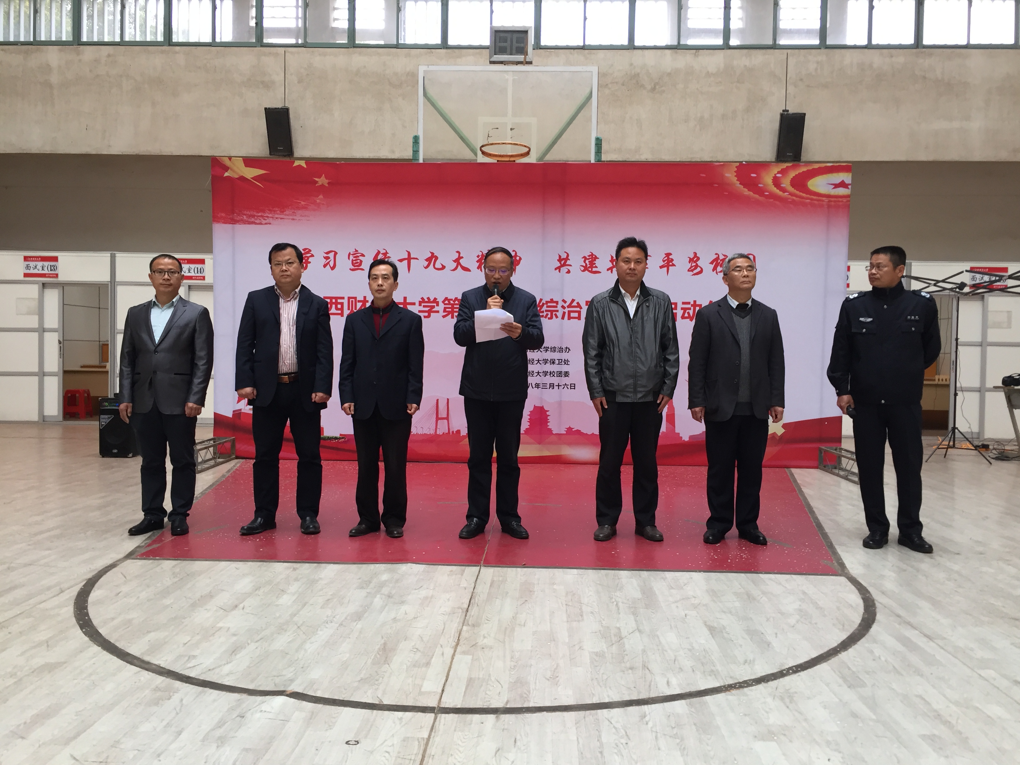 副校长阙善栋对本次宣传月活动进行了具体部署,提出了总体要求。他强调,举办好综治宣传月是中央及省综治办下达一项重要工作任务,各学院、各部门要认真制定宣传方案,精心组织,认真实施,推动综治宣传月活动顺利开展。他要求,要提高认识,强化责任,在思想上高度重视。真正树立起“抓综治工作就是抓发展、就是抓民生、就是抓和谐”的思维理念,以强烈的政治意识、忧患意识、使命意识和创优争先意识,毫不放松地抓好综治和平安创建各项工作,确保全校工作局面和谐稳定。要精心组织,突出重点,有针对性地开展宣传活动。按照“突出主题、面向基层、特色鲜明、形式创新、声势强劲”的思路,以提高师生平安建设参与率、知晓率为目标,高位研究谋划,上下齐抓共管,多措并举推进,确保整个活动有声势有成效。要夯实基础,确保落实,在活动中取得实效。在全校大力营造“平安建设人人皆知、平安活动人人参与、平安成果人人共享”的良好氛围,确保综合治理宣传月活动收到实实在在的成效,为维护和谐稳定的社会局面做出新的更大贡献。