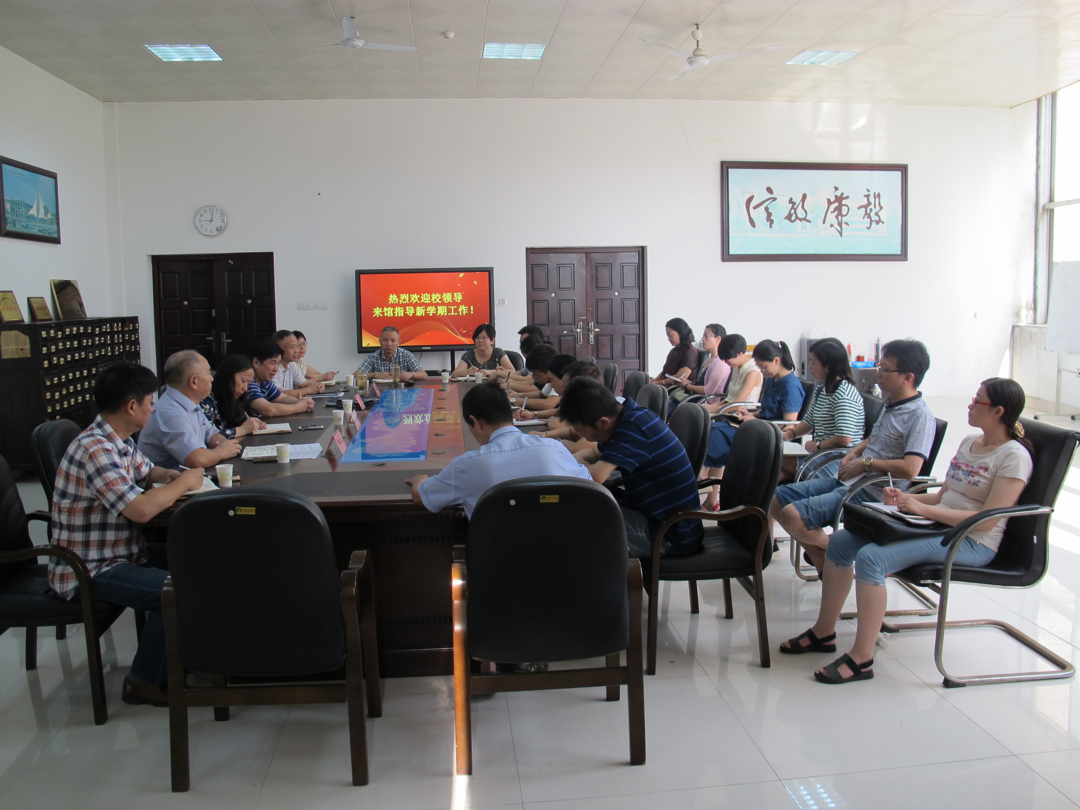 9月2日上午,开学第一天,图书馆召开中层以上干部大会,副校长刘小丽、王小平出席并作重要讲话,对分管工作进行了交接,图书馆馆长邹传教主持会议。