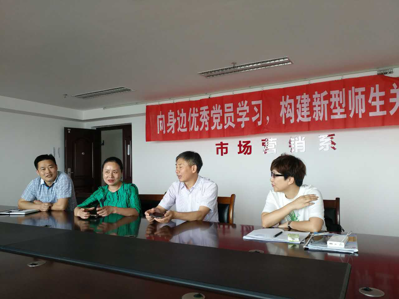 5月17日,工商学院市场营销系党员大会在市营系会议室举行。此次会议主题是“向身边优秀党员学习,构建新型师生关系”,由王晓春老师分享其构建新型师生关系的经历和体会。学院党委书记熊绍辉、副书记黄雨虹,市场营销系党员以及学生代表参加了本次会议,会议由支部书记谌飞龙老师主持。