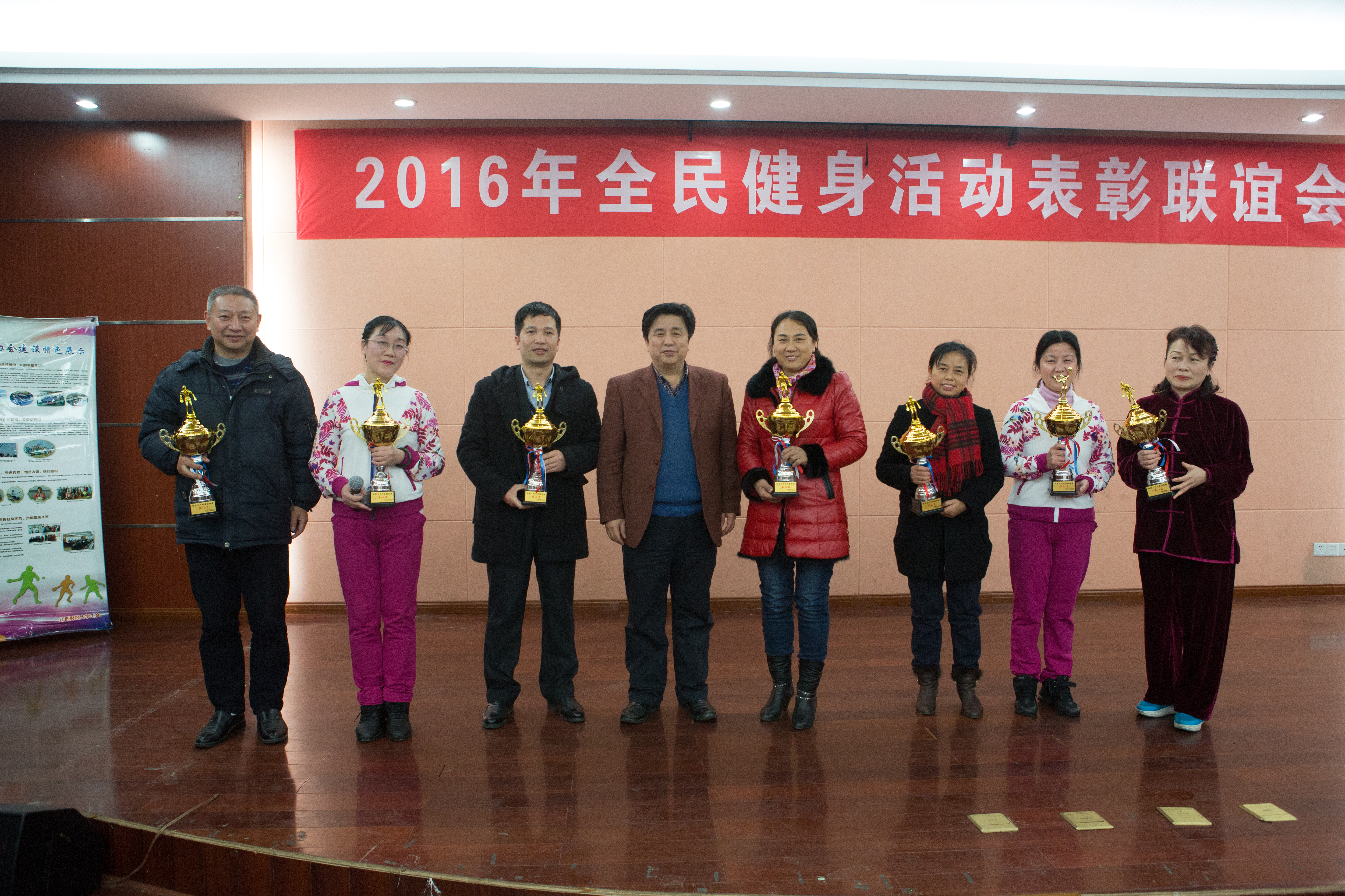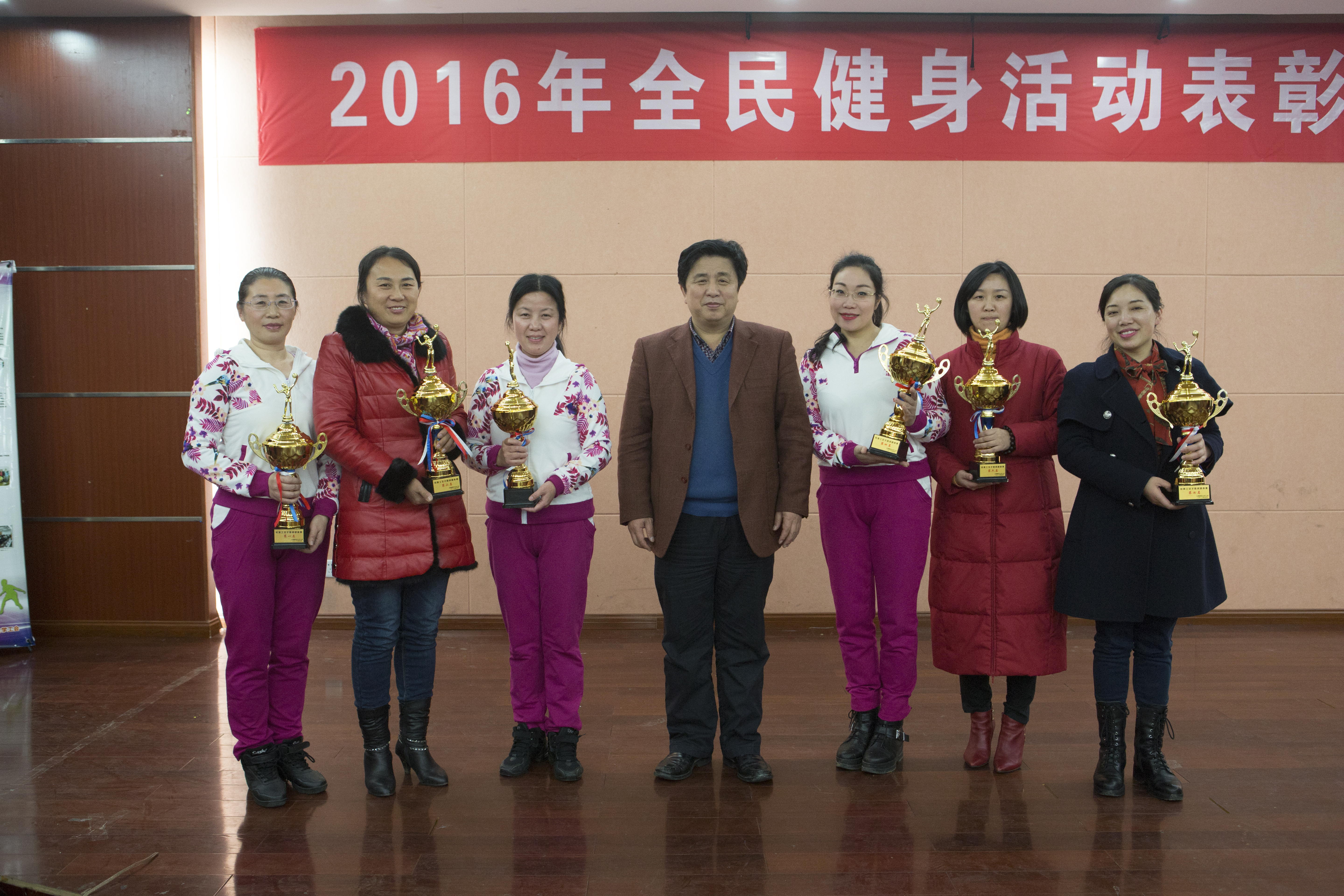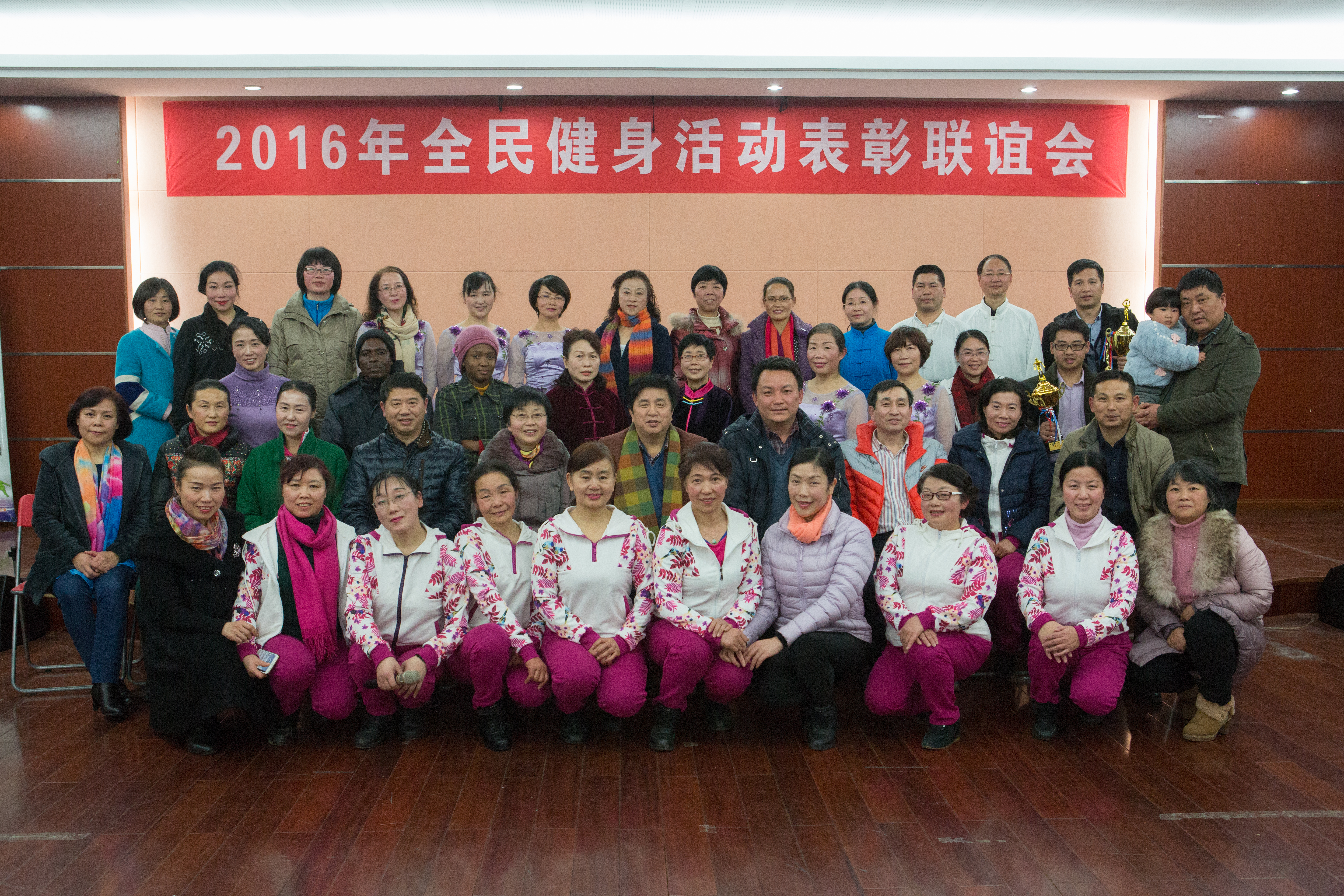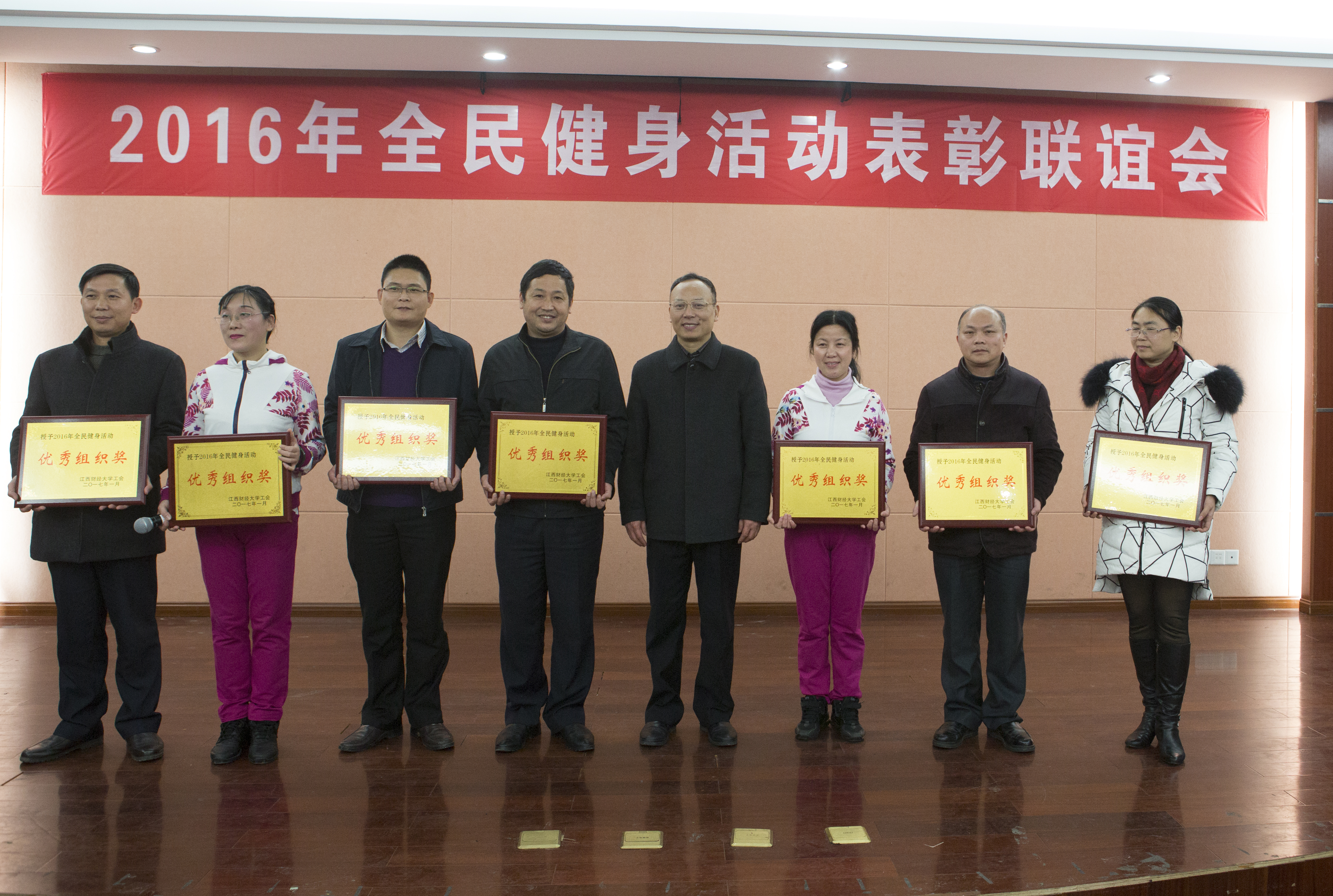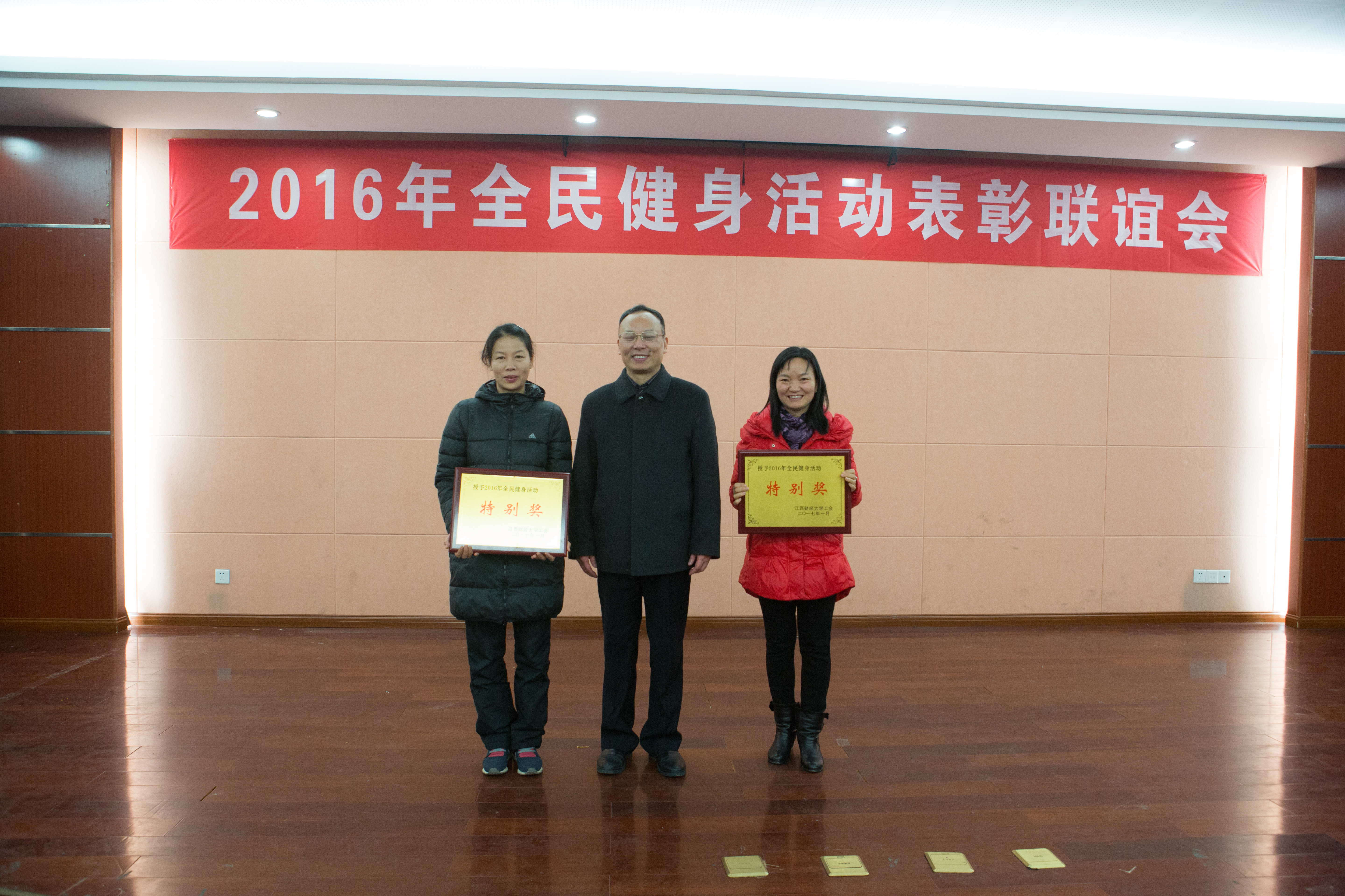 1月11日晚上,学校在工会三楼教工俱乐部举行2016年全民健身活动表彰联谊会。校党委委员、纪委书记杨建林、副校长王小平出席,并给全民健身活动先进单位颁奖。学校有关职能部门负责人应邀出席,各分工会、各文件协会负责人出席了会议。会议由校健身舞协会承办。