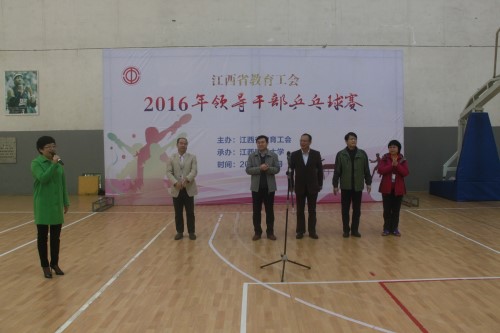 11月12日上午,由江西省教育工会主办、我校承办的为期两天的江西省教育工会2016年领导干部乒乓球赛拉开帷幕。来自全省32个高校的领导干部组成的参赛代表队参加了开幕式,开幕式由省教育工会常务副主席吴艳玲主持。