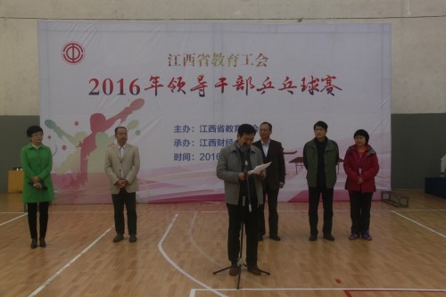 省总工会党组成员、副主席吴海平致开幕辞。他代表江西省总工会、省教育工会和组委会向比赛的如期举行表示热烈的祝贺,对我校为本次比赛所作出的工作表示充分肯定。他指出,江西省教育工会坚持工作贴近基层,贴近生活,贴近教职工的方针,不断创新工作内容,创新工作方式,创新工作手段,广泛开展教职工喜闻乐见的活动,增强了工会组织的吸引力和凝聚力,激发了广大教职工的创新活力,促进了教职工队伍整体素质的提升。致辞中,他还对比赛工作提出要求,并预祝本次领导干部乒乓球赛取得圆满成功。