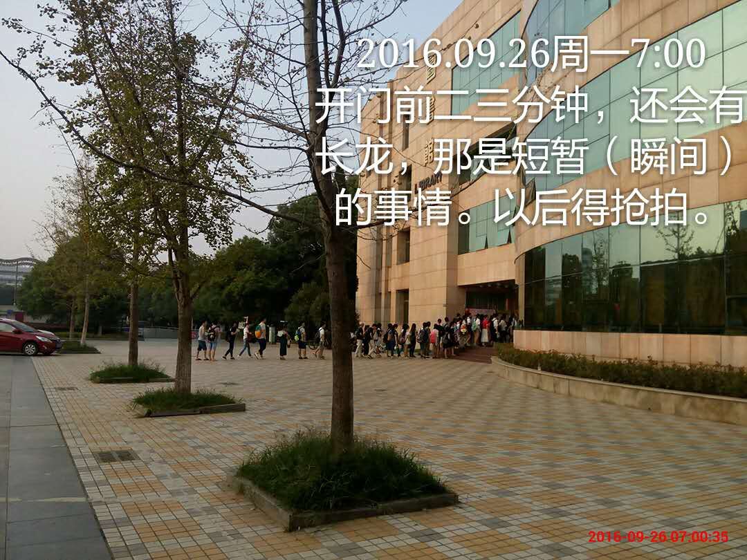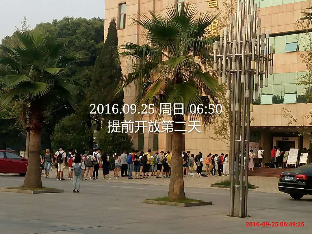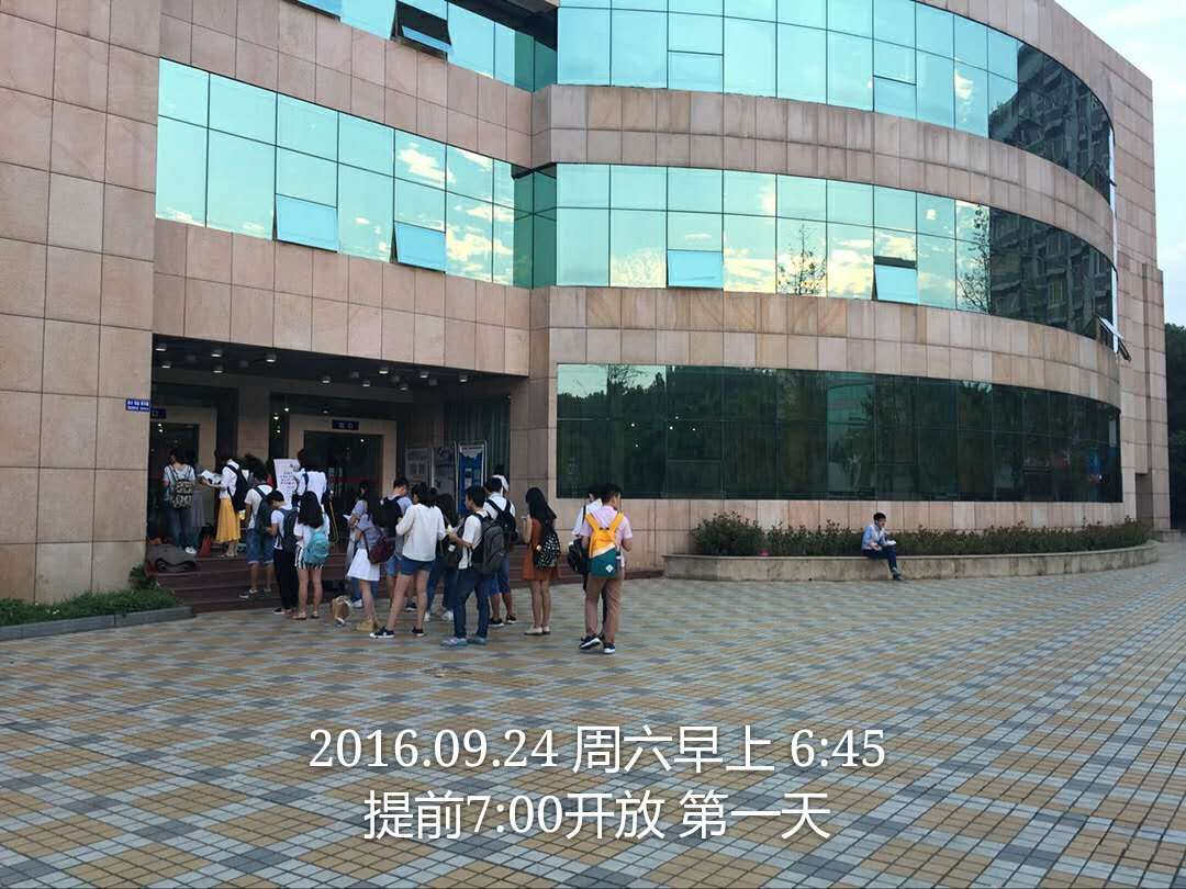 长久以来,图书馆早上8:00前门口的长队是我校一道特殊的风景线,它记录下了江财学子们勤奋读书的身影。自24日按照新的开放时间运行以来,图书馆开馆前15分钟门口排队的学生不到10人,开馆前10分钟不到20人,开馆前3、5分钟大约50—60人也瞬间入馆了。江财学子勤奋学习的身影依旧,但原来提前30多分钟几百人排长队的景象已大大改善,而且开放时间的提前和咽喉更好地满足了广大读者多样化的学习需求,服务更具人性化,深受大家好评,图书馆门前长时间排长队的现象已优化解决。