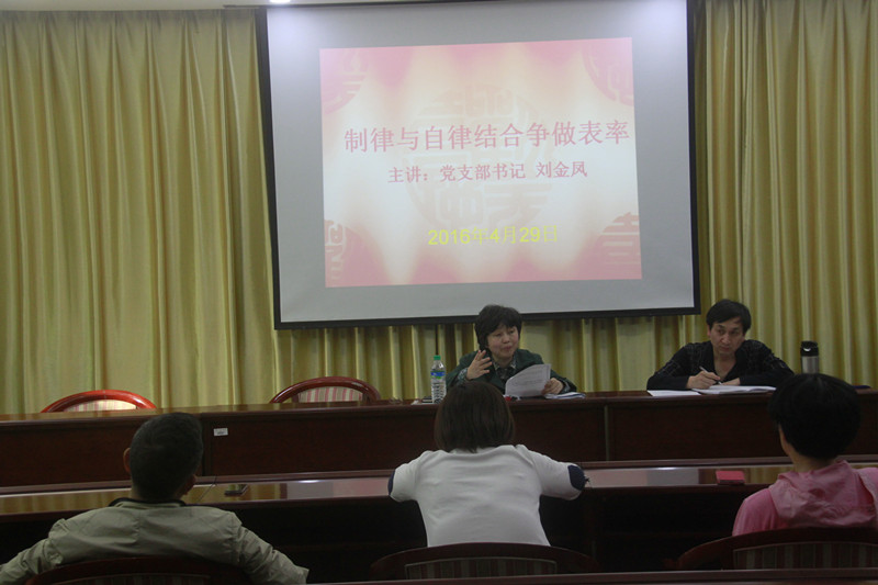 根据学校党委要求,4月29日下午,工会党支部书记、工会主席刘金凤给全体党员,围绕《制律结合自律做好表率》专题内容进行了党课学习和讨论。刘金凤首先从“学党规党章、学系列讲话,做合格党员”不是一次轰轰烈烈的运动而是党员教育正常工作讲起,必须落实到每个党员的日常行为和例行的组织教育工作当中。结合自己工作当中的思考,以《制律结合自律做好表率》来分析每个人在日常生活中是如何寻求做事情的完美性,这就是人的自律精神;而制度的健全和完善是成全自律精神的保障,两者的完美结合才能使我们的事业更加繁荣昌盛。