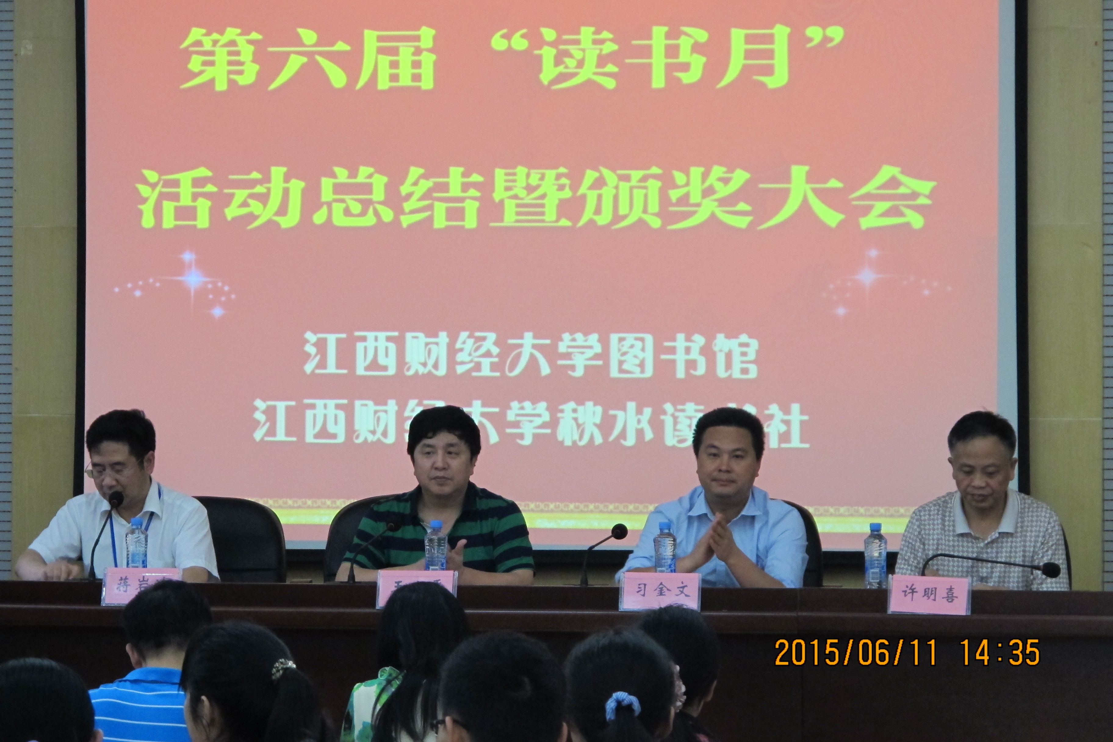 王小平副校长做了重要讲话,对图书馆“读书月”活动开展的深远意义以及图书馆和秋水读书社对此项活动的精心筹备与积极组织给予了充分肯定。他强调充分利用好图书馆的资源是与我们每一位老师息息相关的,呼吁老师们在开学的第一天就要给学生一份本课程的阅读书目清单,让学生积极自主地去完成相关阅读,图书馆是学生的第二课堂,办好了图书馆就办好了大学的一半。针对即将落成的蛟桥园新图文信息大楼的装修设计,王副校长还畅谈了自己心目中理想的图书馆,强调了曲径通幽、古典现代柔和、休闲交流研讨等布局风格、使用功能及文化元素的多样化与个性化。