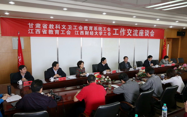 3月31日上午,甘肃省教科文卫工会主席刘虎林率甘肃省教育系统工会主席一行50余人来我校调研交流。江西省总工会党组成员、副主席,江西省教育工会主席柯进水、调研员陈伟芳陪同调研。校党委副书记易小明、党办校办主任袁雄、工会主席刘金凤出席,座谈会由江西省教育工会调研员陈伟芳主持。