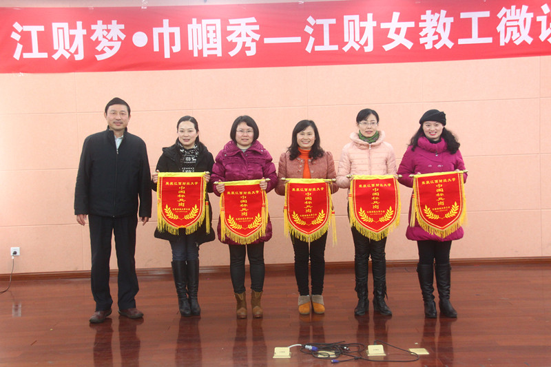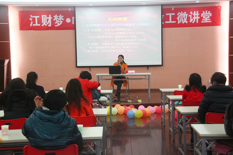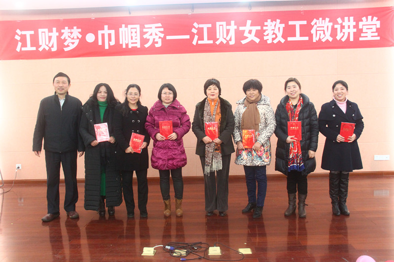 3月8日下午,是江财女教工微讲堂活动。共有20多个分工会选派了选手参加,在此次活动中,特邀请江西省人民医院妇产科主任罗浦英主任医师,为女教工举行“女性生理保健知识专题讲座”。讲座之前,校工会举行第二届“巾帼标兵”和首届“巾帼标兵岗”颁奖活动,校党委副书记易小明为获奖者颁奖,并代表校党委致辞祝福全校的女教工节日快乐,党办、校办,组织人事、宣传部、学工部、团委等部门负责人给全校女同胞送上节日祝福。