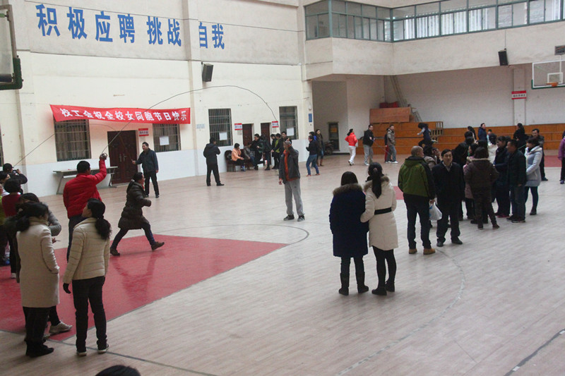 3月7日是集体跳绳比赛。共有机关、附中、工商学院、金融学院、体育学院等18个分工会报名参加,在蛟桥园大学生活动中心进行,经过紧张、活跃的比赛,机关分工会以两分钟140次名列第一,网络管理中心和附属中学以125次并列第二,其它分工会也获得了不同的奖项。跳绳比赛是集体项目,既锻炼了身体,又增强了团结合作精神。