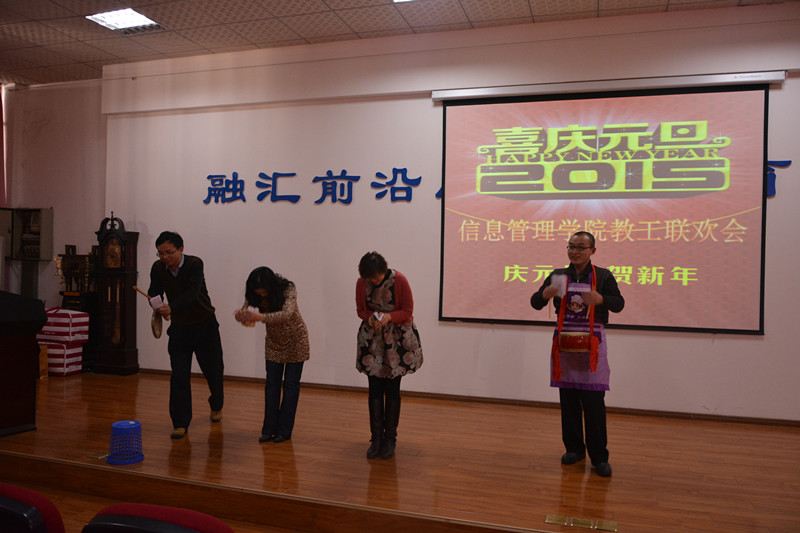 时光飞逝,又到辞旧迎新时。在2015年元旦这个喜气的日子里,信息管理学院全体教工共同组织、参与了2015信息管理学院元旦教工联欢会。联欢会会伊始,信息管理学院各个系纷纷向全体教职工发出了贺词,诉说着对新的一年的憧憬和对师生们的祝福。