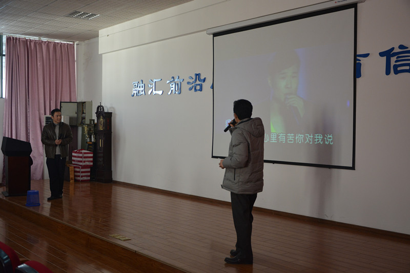联欢会节目在刘炜、陈思华老师的合唱《我的好兄弟》歌声中拉开帷幕;荣获校教职工十大歌手桂冠的赖新峰老师深情地演唱的《高原红》,博得了一阵喝彩声;同样获得校十大歌手入围奖的伍琦老师以一首粤语版《女儿情》点亮全场;杨淑玲老师一曲《祖国啊,我永远热爱你》,深情演唱引发全场“再来一首”的欢呼;何明老师独具特色的舞蹈《学跳舞》,调动了观众们的热情,引得现场气氛走向高潮;信管年轻教职工带来的方言版诗歌朗诵《沁园春.雪》别有另一番风味;经典恶搞的表演《三句半》天马行空,令人忍俊不禁,再次将联欢会推向高潮。俞丽兰老师的《女人花》送给所有的女教职工们,表达对女教职工的祝福;易伟明老师的《草原之夜》带动现场观众一齐驰骋大草原之上;现场的万建香和钟敏娟老师在气氛带动下也即兴上台给大家演唱了一曲《其实你不懂我的心》,现场氛围十分热烈;联欢会在葛勇老师演唱的《贝尔加湖畔》的优美、浪漫的旋律中落下帷幕。