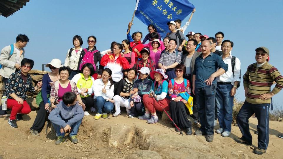 中日友好林纪念碑与湾里城区高差估计约100米,有的山头已在它的膝下,208山地只隔两道S型的缓坡。会员们边聊边走,时而驻足观景,时而追赶同伴——山底乌井水库如坠落在群山中的一面大镜子,面向天空,熠熠生辉;山下的盘山公路,好象飘落在山腰的绵长白练,它盘亘交错,拴住了青山座座。经过一段陡峭的山道,就到了景区主峰。借着山顶空地,协会落实本次活动的主题——集中听取学校全民健身推进会会议精神,交流登山心得体会。约中午12时,会员们站立主峰峰顶,头顶蓝天,挥动会旗,合影留念。中午1时,经过一个小时难下的山路之后,结束了本次登山活动,愉快返校。(登山协会供稿)