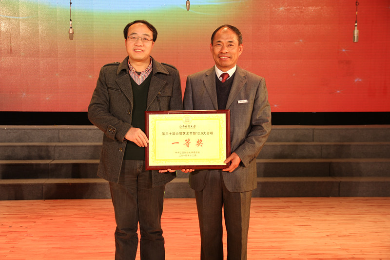2014年12月6日晚,我校蛟桥大礼堂内华灯璀璨,歌声飞扬,校第三十届合唱艺术节暨12.9大合唱比赛在此如期举行。经过激烈的角逐,信息管理学院院一曲《江山多娇》在全校所有的参赛队伍中脱颖而出,以优异的成绩喜获一等奖第一名,由副省长朱虹亲自为我院颁奖,院党委书记姜红仁作为信息管理学院代表上台领奖。同时,信息管理学院大合唱指挥杨勤老师以第一名的成绩荣获优秀指挥奖。