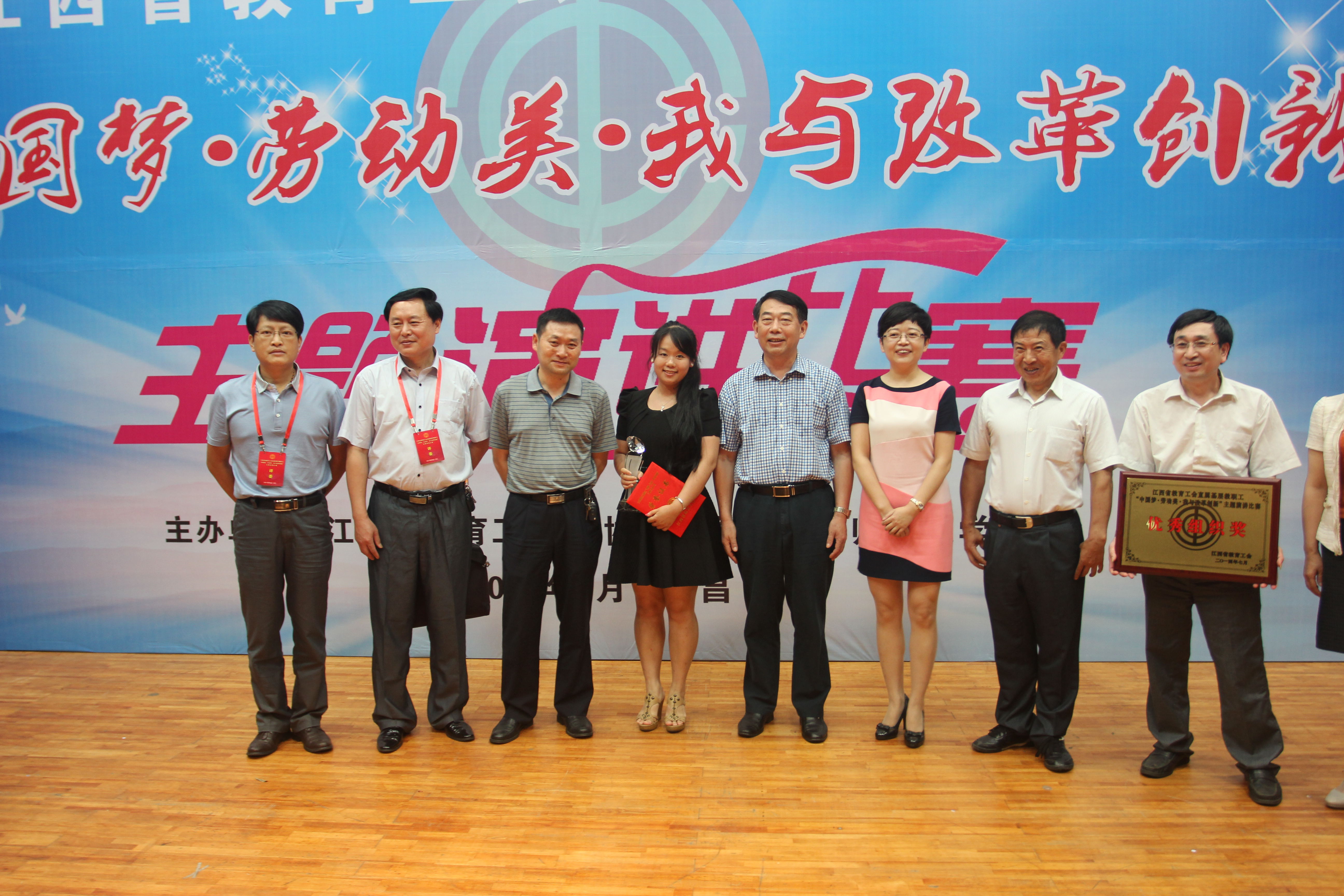 2014年7月5日,在江西师范大学老校区举行了江西省教育系统直属基层工会“中国梦劳动美我与改革创新”主题演讲赛,代表我校参加比赛的廖春妍老师,表现出色,荣获三等奖,我校荣获优秀组织奖。省总工会党组成员、副主席、教育工会主席柯进水出席颁奖典礼并发表重要讲话。柯主席要求全省教育系统直属基层工会,以此次竞赛活动为契机,引导全省教职工积极参与改革、支持改革、推进改革,为实现江西“发展升级、小康提速、绿色崛起、实干兴赣”的目标建功立业,为全面建成小康社会、实现中国梦而奋斗。