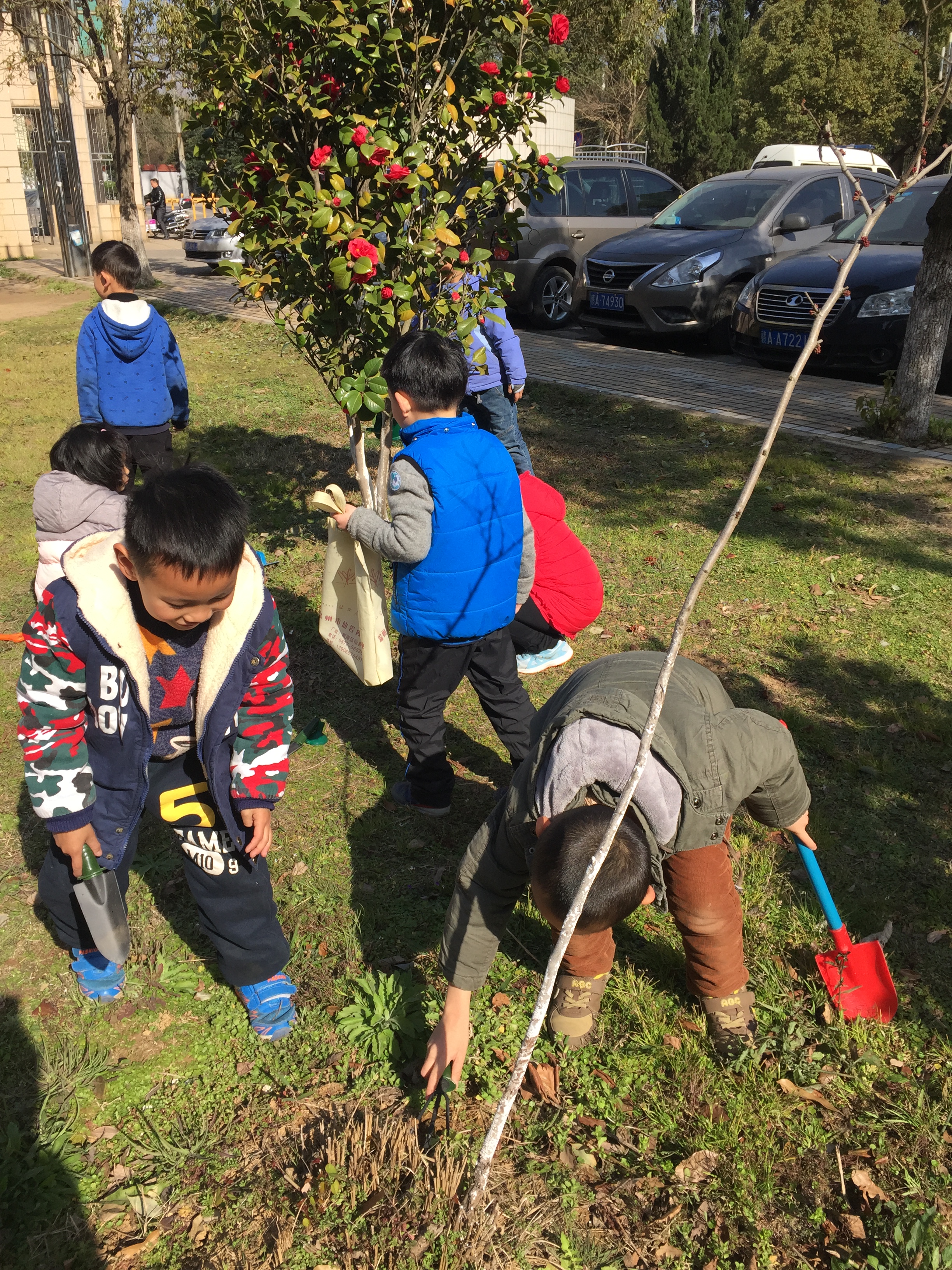 孩子们在园长及老师的带领下,来到了校医院前的草坪地上。小朋友们在老师的指导下,都纷纷轻轻蹲在树苗身旁,卷起袖拿起工具为树木除草,端起手中的水桶给树木浇水。为它们营造了一个舒适的生长环境,孩子们充满爱心的行动和童稚的语言表达了他们对树木的爱护和祝福。通过此次活动,不仅用实际行动加深了幼儿的绿化环境意识,同时也促进了师幼之间的互动,更使孩子们对种植产生兴趣,使之逐渐成为爱护花草树木的小公民!(陈星 文\图)