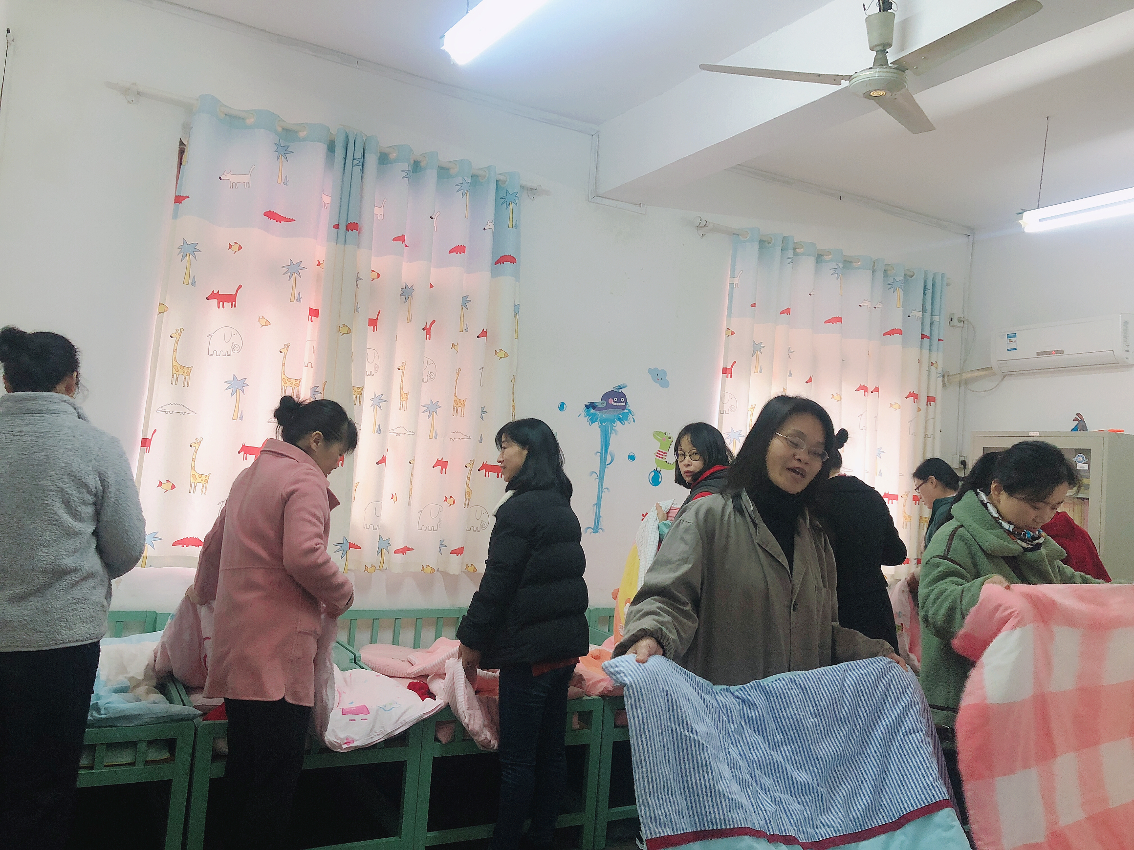 11月29日上午九点15分,幼儿园保育员:王丽华、冷凤霞、杨君红、苟利萍、程莉、邹清、欧新菊、王平、罗强凤九位教师分别从叠被子、叠衣服、切水果几个项目进行竞赛。叠被子比赛中,保育员老师都非常娴熟地整理床铺,整个过程行云流水,被子叠的整整齐齐,令人眼前一亮;切水果摆盘的比赛中,保育员老师先把果皮果核都以最快的速度清理干净,最后把水果切好整齐漂亮的摆在餐盘里。这一切彰显着保育员们高标准的业务的实操技能。