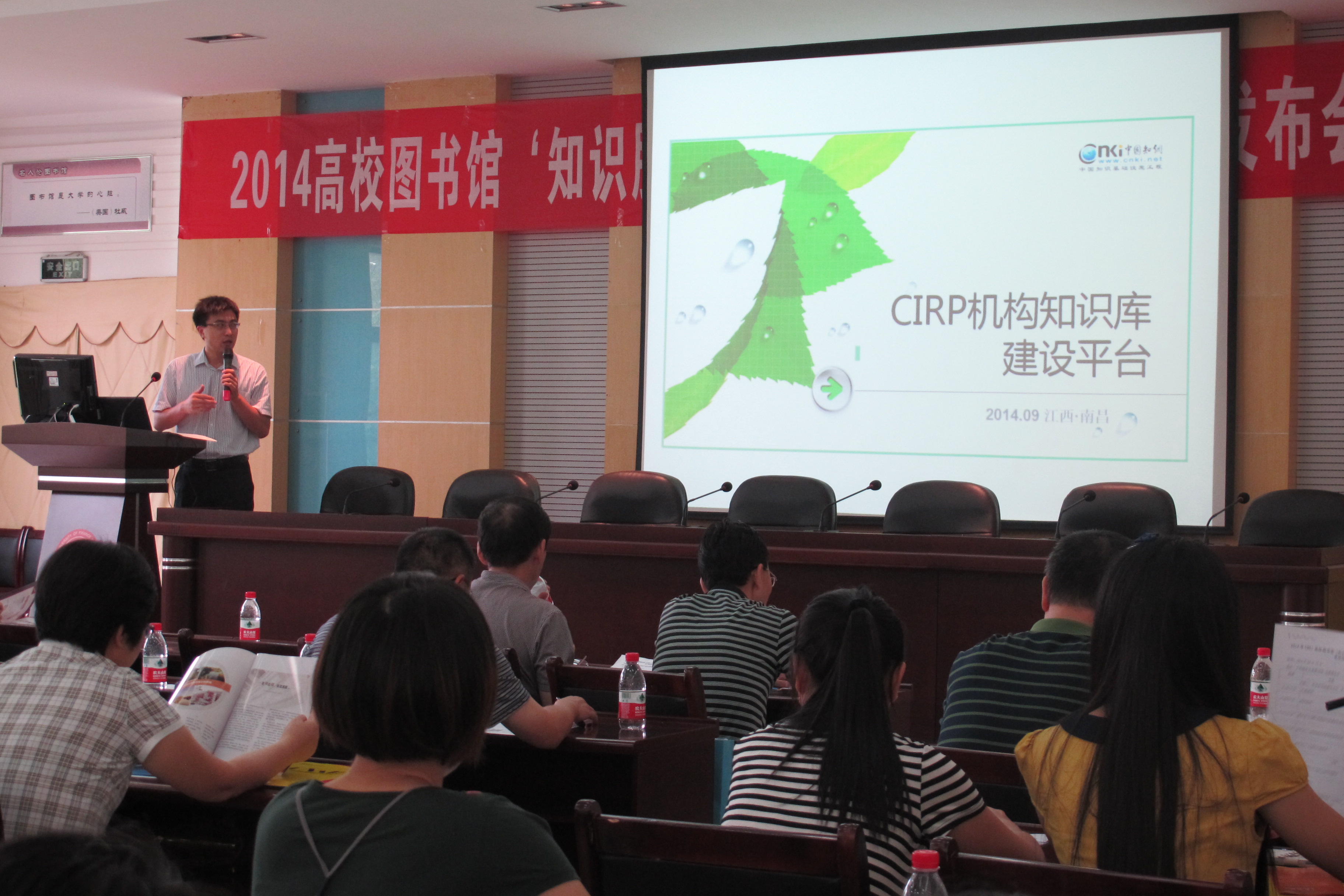 9月24日上午,2014高校图书馆“知识服务、知网同行”CNKI新产品发布会(江西站)在我馆报告厅举行。来自全省多个高校图书馆的近50位同仁参加了会议。我馆蒋岩波馆长致欢迎辞,对前来参会的各位图书馆领导、同仁表示欢迎,同时对中国知网公司多年来对我省高校图书馆的服务与支持表示了感谢。